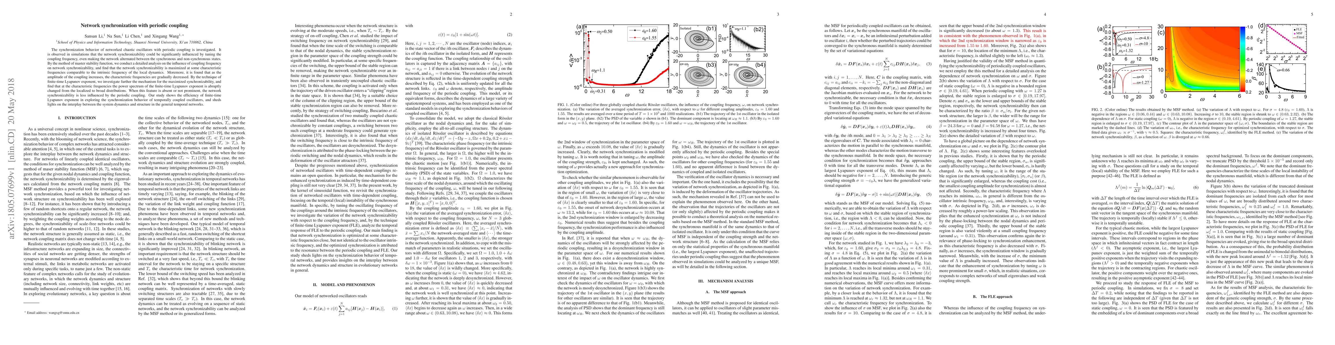 This paper explores the synchronization behavior of networked chaotic oscillators under periodic coupling, revealing that tuning the coupling frequency can significantly affect synchronizability, with the network alternating between synchronous and non-synchronous states. The study finds that optimal synchronizability occurs at specific frequencies, which decrease with increased coupling amplitude, and employs finite-time Lyapunov exponents to uncover the underlying mechanisms.