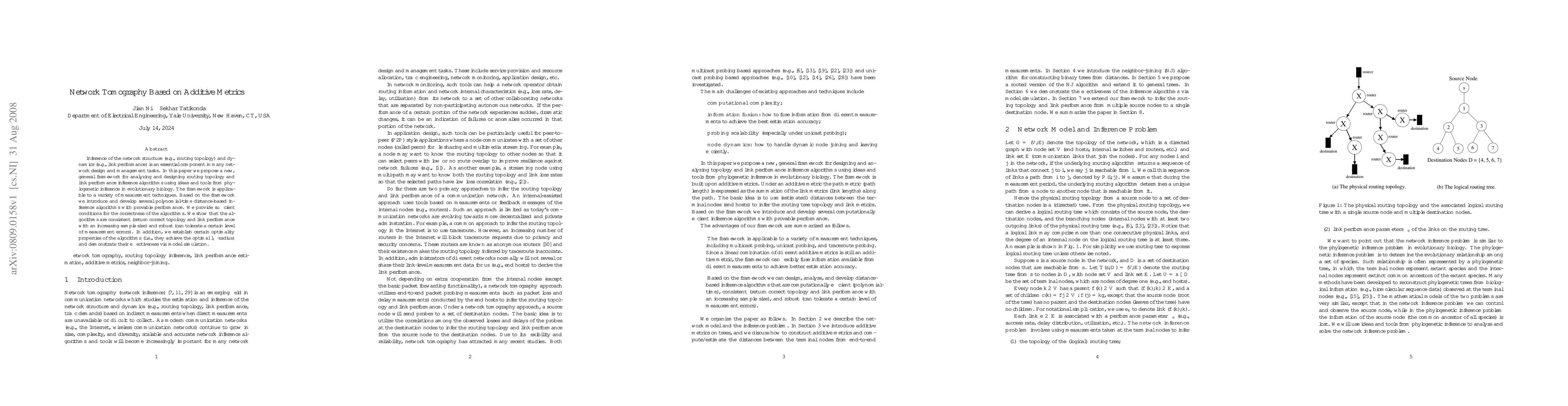Inference of the network structure (e.g., routing topology) and dynamics (e.g., link performance) is an essential component in many network design and management tasks. In this paper we propose a new, general framework for analyzing and designing routing topology and link performance inference algorithms using ideas and tools from phylogenetic inference in evolutionary biology. The framework is applicable to a variety of measurement techniques. Based on the framework we introduce and develop several polynomial-time distance-based inference algorithms with provable performance. We provide sufficient conditions for the correctness of the algorithms. We show that the algorithms are consistent (return correct topology and link performance with an increasing sample size) and robust (can tolerate a certain level of measurement errors). In addition, we establish certain optimality properties of the algorithms (i.e., they achieve the optimal $l_\infty$-radius) and demonstrate their effectiveness via model simulation.
