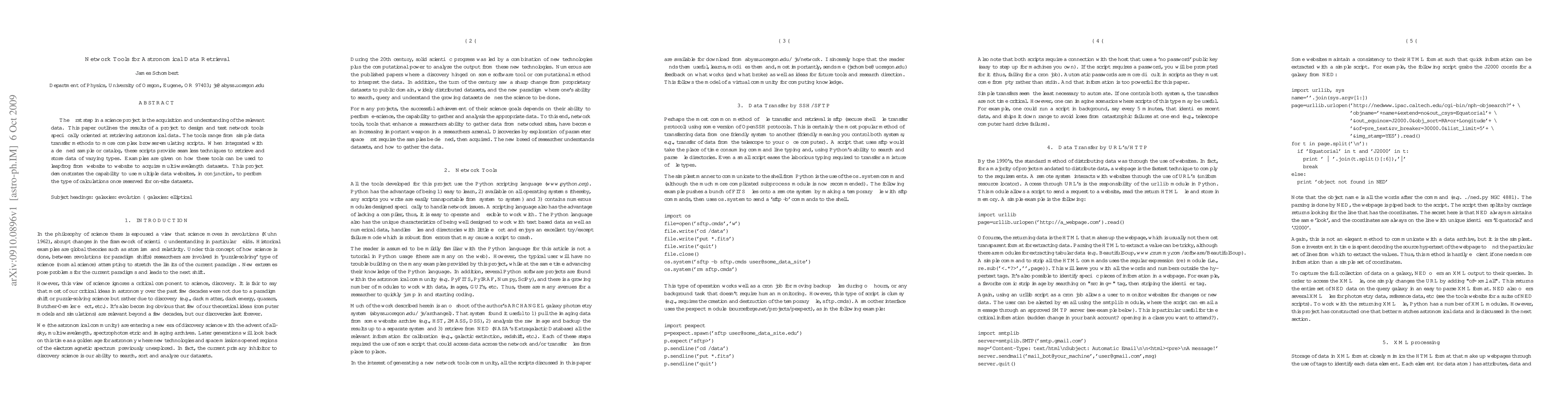 The first step in a science project is the acquisition and understanding of the relevant data. This paper outlines the results of a project to design and test network tools specifically oriented at retrieving astronomical data. The tools range from simple data transfer methods to more complex browser-emulating scripts. When integrated with a defined sample or catalog, these scripts provide seamless techniques to retrieve and store data of varying types. Examples are given on how these tools can be used to leapfrog from website to website to acquire multi-wavelength datasets. This project demonstrates the capability to use multiple data websites, in conjunction, to perform the type of calculations once reserved for on-site datasets.
