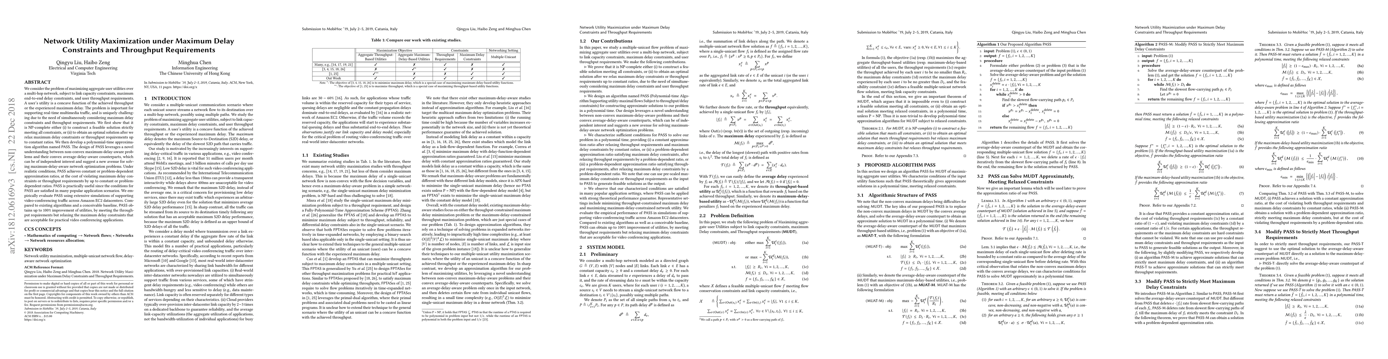 This paper addresses the NP-complete problem of maximizing aggregate user utilities in multi-hop networks under delay and throughput constraints. It introduces PASS, a polynomial-time approximation algorithm that achieves significant utility improvements by relaxing maximum delay constraints, validated through simulations in video-conferencing scenarios.