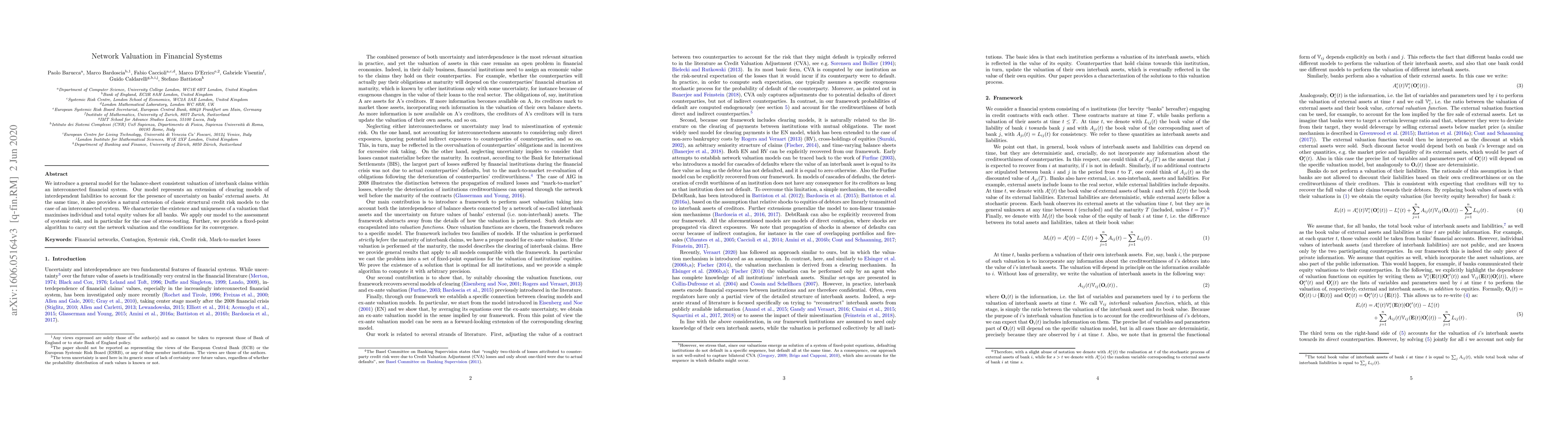 This paper presents a model for valuing interbank claims in interconnected financial systems, considering uncertainty in external assets. It extends clearing models and structural credit risk models, ensuring a unique valuation maximizing equity for all banks. The model aids in assessing systemic risk and stress-testing, with a fixed-point algorithm for network valuation and convergence conditions provided.