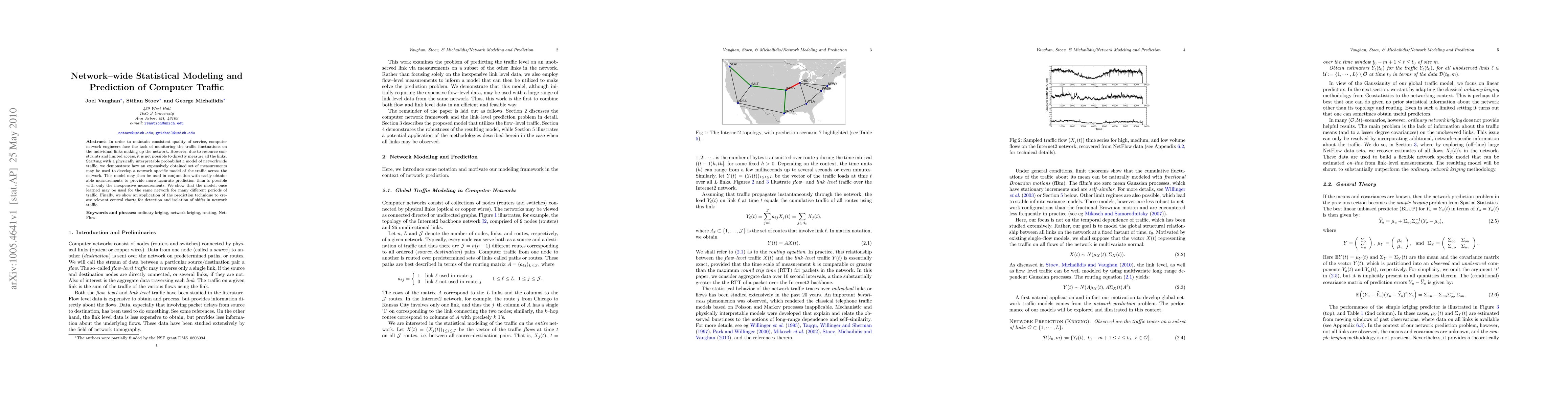 This paper develops a network-wide statistical model to predict computer traffic using a combination of expensive and inexpensive measurements, improving prediction accuracy. It also demonstrates the model's reusability across different time periods and applies it to create control charts for detecting traffic shifts.