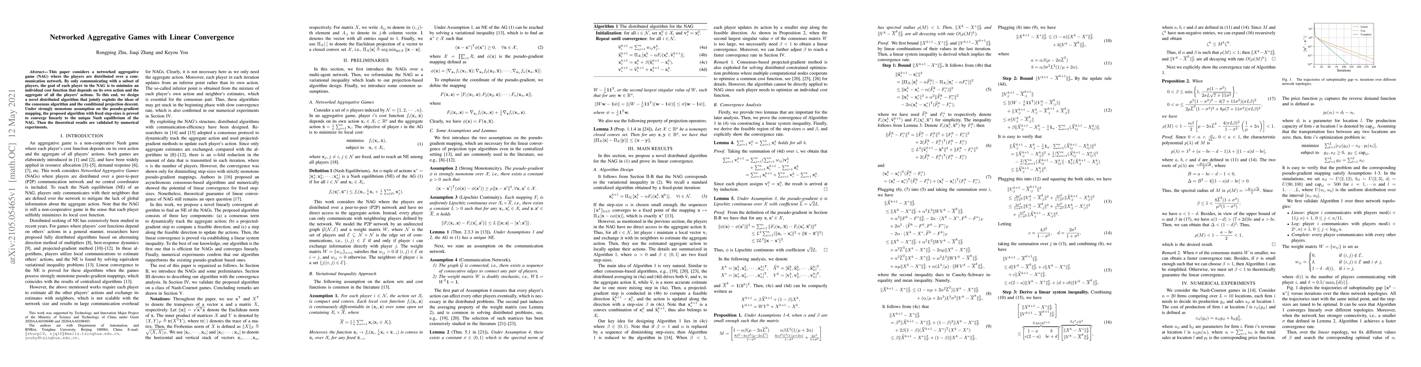 This paper considers a networked aggregative game (NAG) where the players are distributed over a communication network. By only communicating with a subset of players, the goal of each player in the NAG is to minimize an individual cost function that depends on its own action and the aggregate of all the players' actions. To this end, we design a novel distributed algorithm that jointly exploits the ideas of the consensus algorithm and the conditional projection descent. Under strongly monotone assumption on the pseudo-gradient mapping, the proposed algorithm with fixed step-sizes is proved to converge linearly to the unique Nash equilibrium of the NAG. Then the theoretical results are validated by numerical experiments.