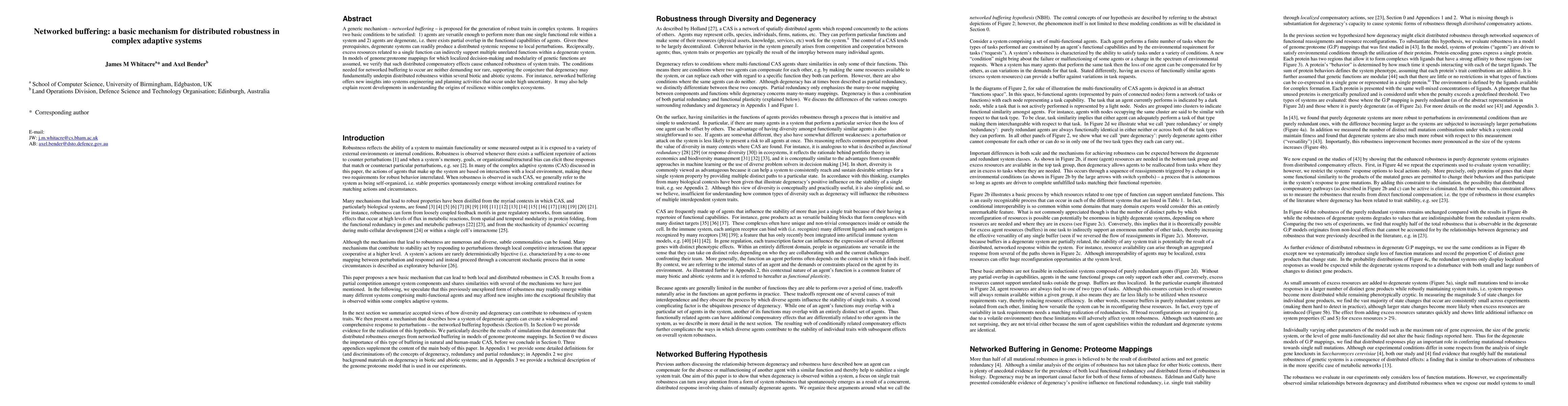 A research paper proposes a mechanism called networked buffering for generating robust traits in complex systems through degeneracy and versatility of agents, leading to enhanced robustness and potential insights into systems engineering and ecological resilience.