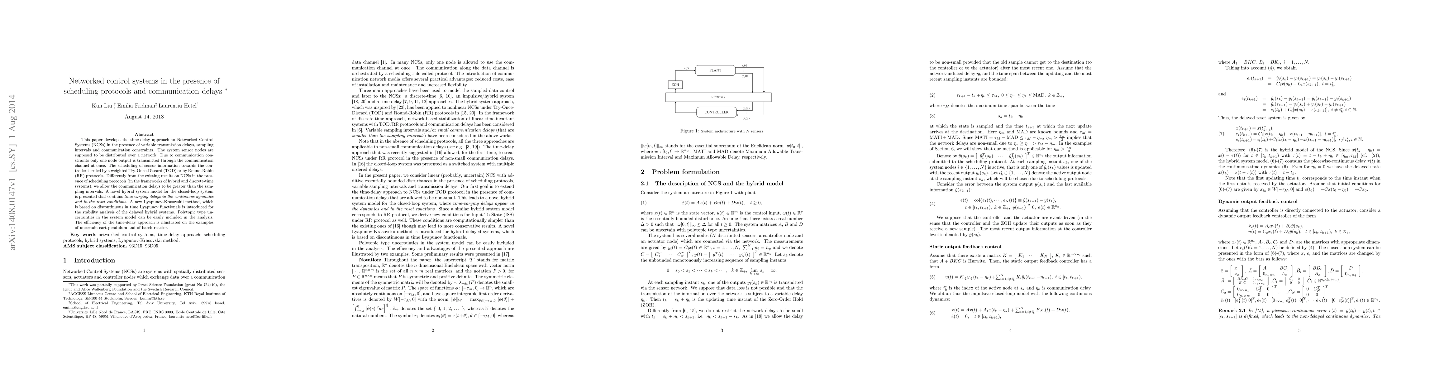 This paper develops the time-delay approach to Networked Control Systems (NCSs) in the presence of variable transmission delays, sampling intervals and communication constraints. The system sensor nodes are supposed to be distributed over a network. Due to communication constraints only one node output is transmitted through the communication channel at once. The scheduling of sensor information towards the controller is ruled by a weighted Try-Once-Discard (TOD) or by Round-Robin (RR) protocols. Differently from the existing results on NCSs in the presence of scheduling protocols (in the frameworks of hybrid and discrete-time systems), we allow the communication delays to be greater than the sampling intervals. A novel hybrid system model for the closed-loop system is presented that contains {\it time-varying delays in the continuous dynamics and in the reset conditions}. A new Lyapunov-Krasovskii method, which is based on discontinuous in time Lyapunov functionals is introduced for the stability analysis of the delayed hybrid systems. Polytopic type uncertainties in the system model can be easily included in the analysis. The efficiency of the time-delay approach is illustrated on the examples of uncertain cart-pendulum and of batch reactor.