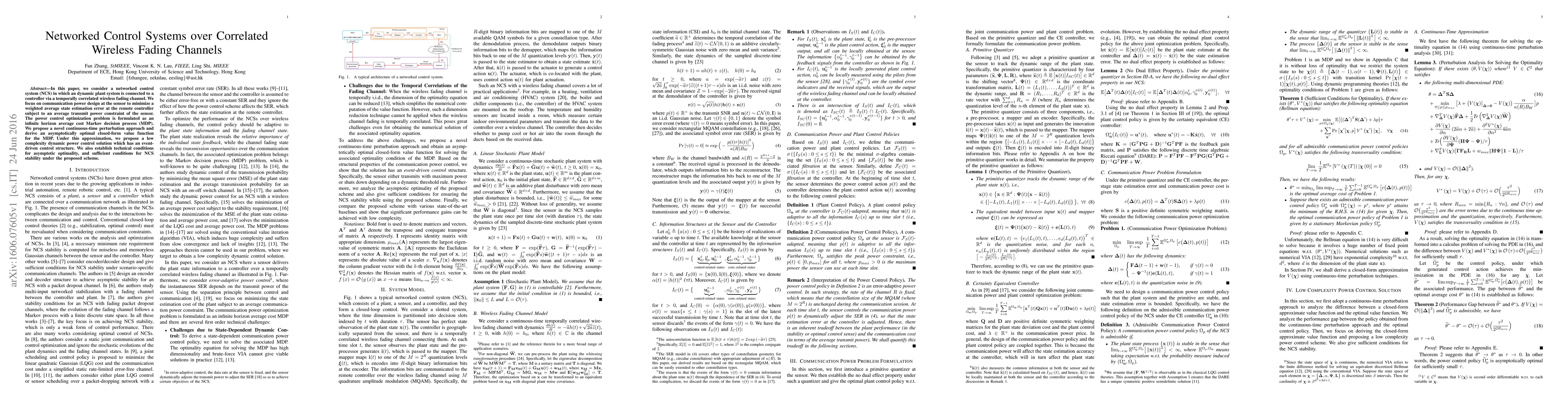 In this paper, we consider a networked control system (NCS) in which an dynamic plant system is connected to a controller via a temporally correlated wireless fading channel. We focus on communication power design at the sensor to minimize a weighted average state estimation error at the remote controller subject to an average transmit power constraint of the sensor. The power control optimization problem is formulated as an infinite horizon average cost Markov decision process (MDP). We propose a novel continuous-time perturbation approach and derive an asymptotically optimal closed-form value function for the MDP. Under this approximation, we propose a low complexity dynamic power control solution which has an event- driven control structure. We also establish technical conditions for asymptotic optimality, and sufficient conditions for NCS stability under the proposed scheme.