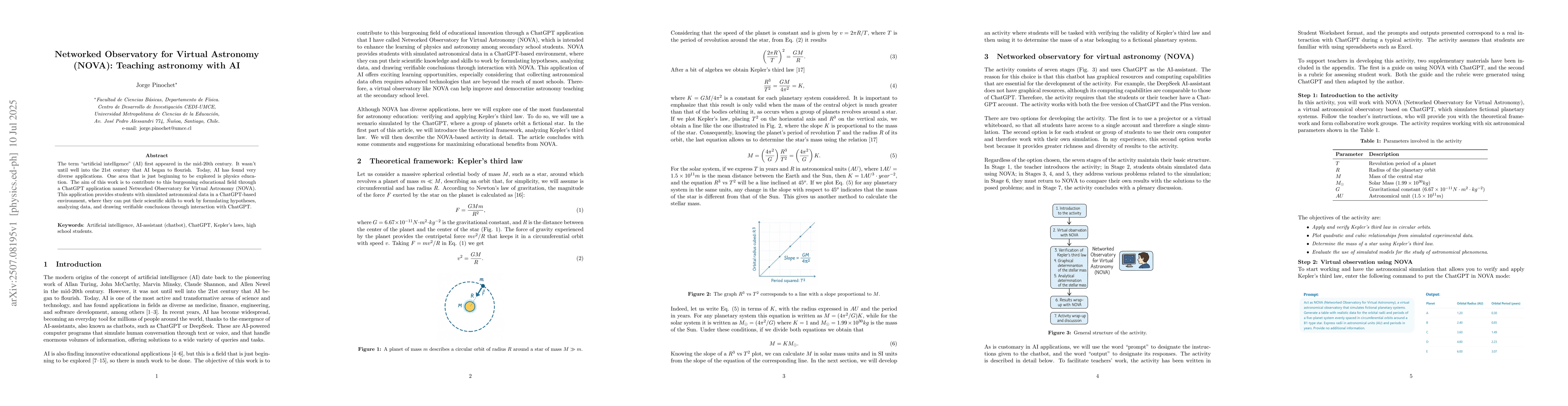The term artificial intelligence (AI) first appeared in the mid-20th century. It wasn't until well into the 21st century that AI began to flourish. Today, AI has found very diverse applications. One area that is just beginning to be explored is physics education. The aim of this work is to contribute to this burgeoning educational field through a ChatGPT application named Networked Observatory for Virtual Astronomy (NOVA). This application provides students with simulated astronomical data in a ChatGPT-based environment, where they can put their scientific skills to work by formulating hypotheses, analyzing data, and drawing verifiable conclusions through interaction with ChatGPT.
