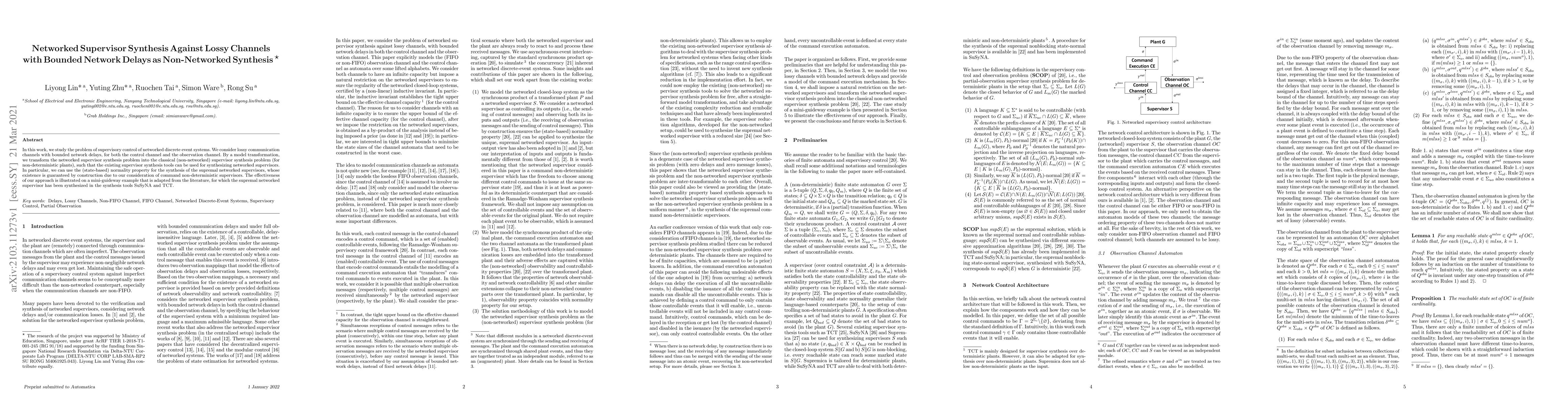 This paper addresses supervisory control for networked discrete event systems over lossy channels with bounded delays, transforming the networked synthesis problem into a classical non-networked one, enabling the use of existing synthesis tools. The method guarantees the existence of supremal networked supervisors through command non-deterministic supervisors and is demonstrated via a mini-guideway example.