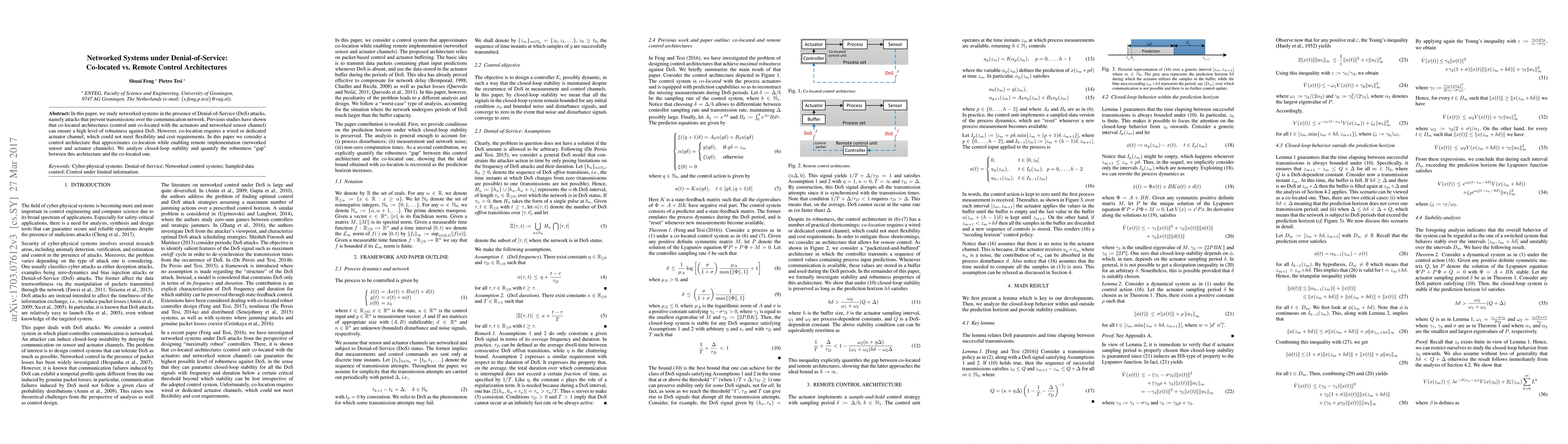 This paper investigates networked systems' resilience against Denial-of-Service (DoS) attacks, comparing the robustness of co-located architectures with remote control implementations. It finds that while co-location offers high robustness, it lacks flexibility and cost-efficiency, and proposes a remote control architecture that approximates co-location's benefits while using networked channels.