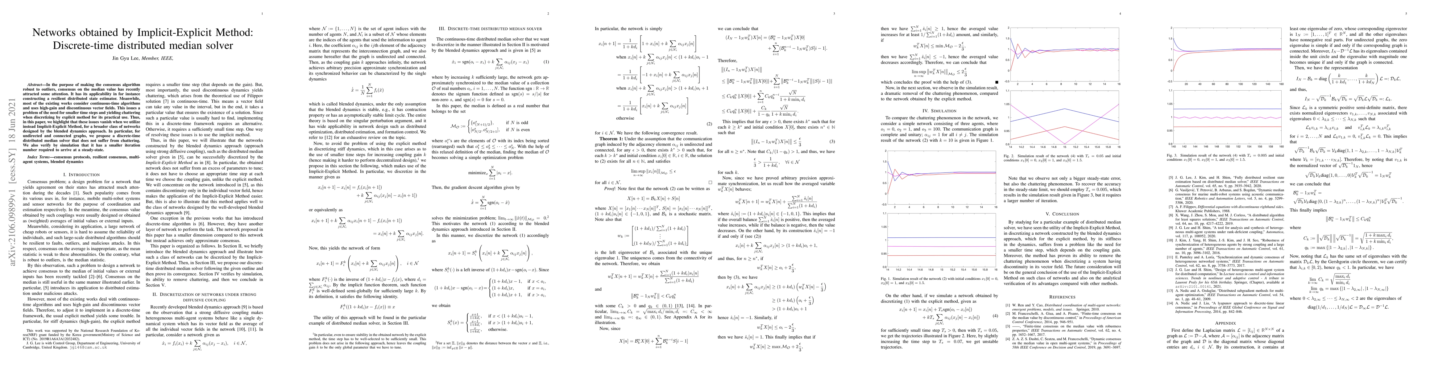 Researchers propose a discrete-time distributed median solver using the Implicit-Explicit Method to improve consensus algorithm robustness against outliers, achieving smoother convergence without chattering issues.