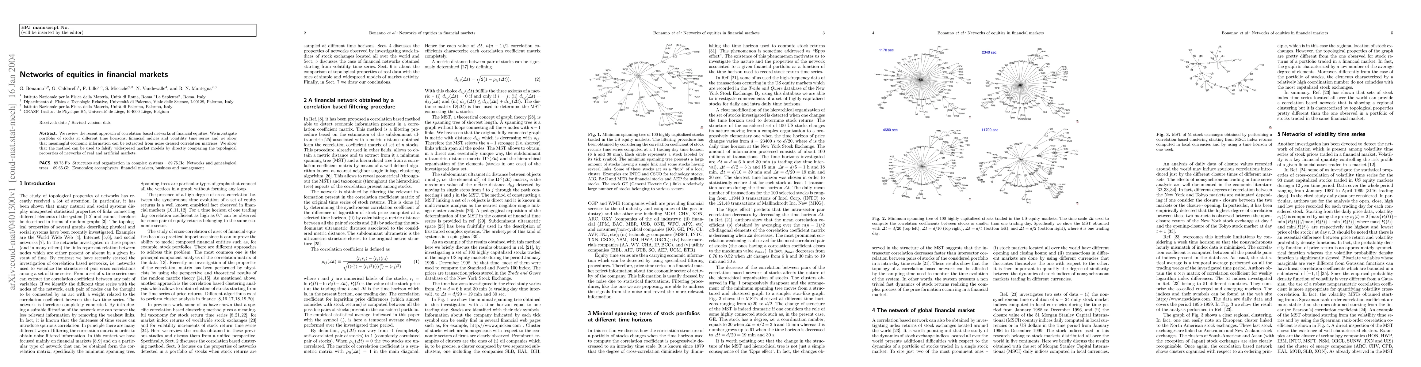 This study examines correlation-based networks of financial equities to extract meaningful economic information from noise-ridden data. It also shows that these networks can be used to test existing market models.