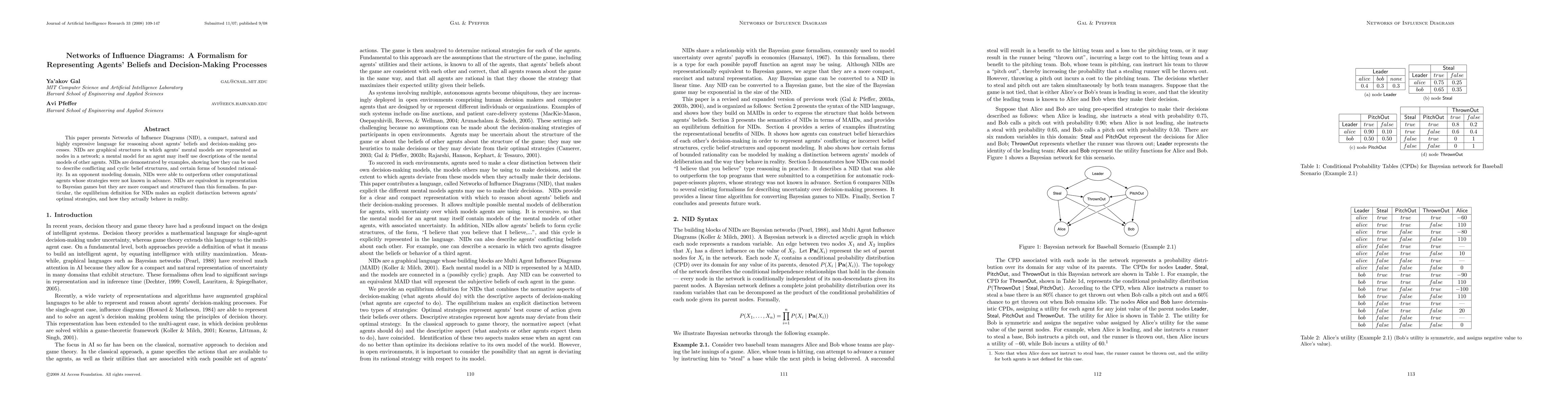 This paper presents Networks of Influence Diagrams (NID), a compact, natural and highly expressive language for reasoning about agents beliefs and decision-making processes. NIDs are graphical structures in which agents mental models are represented as nodes in a network; a mental model for an agent may itself use descriptions of the mental models of other agents. NIDs are demonstrated by examples, showing how they can be used to describe conflicting and cyclic belief structures, and certain forms of bounded rationality. In an opponent modeling domain, NIDs were able to outperform other computational agents whose strategies were not known in advance. NIDs are equivalent in representation to Bayesian games but they are more compact and structured than this formalism. In particular, the equilibrium definition for NIDs makes an explicit distinction between agents optimal strategies, and how they actually behave in reality.