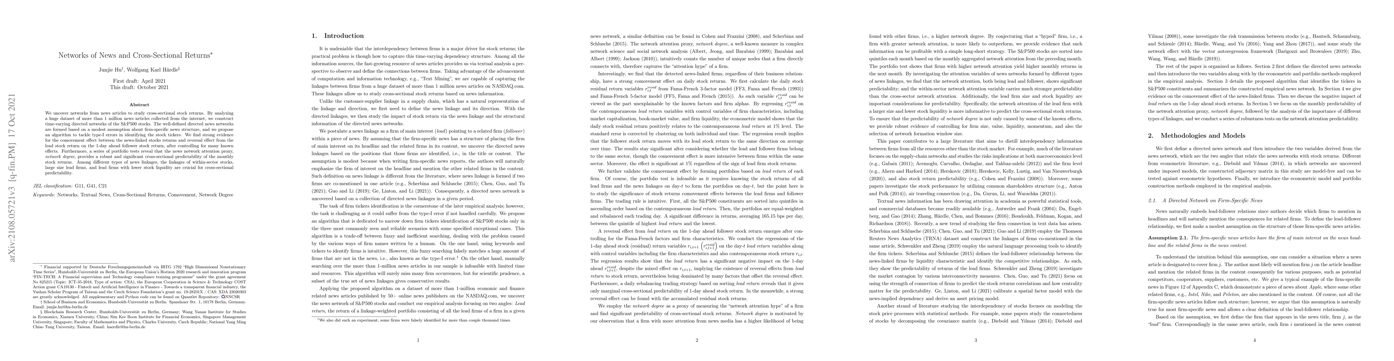 We uncover networks from news articles to study cross-sectional stock returns. By analyzing a huge dataset of more than 1 million news articles collected from the internet, we construct time-varying directed networks of the S&P500 stocks. The well-defined directed news networks are formed based on a modest assumption about firm-specific news structure, and we propose an algorithm to tackle type-I errors in identifying the stock tickers. We find strong evidence for the comovement effect between the news-linked stocks returns and reversal effect from the lead stock return on the 1-day ahead follower stock return, after controlling for many known effects. Furthermore, a series of portfolio tests reveal that the news network attention proxy, network degree, provides a robust and significant cross-sectional predictability of the monthly stock returns. Among different types of news linkages, the linkages of within-sector stocks, large size lead firms, and lead firms with lower stock liquidity are crucial for cross-sectional predictability.