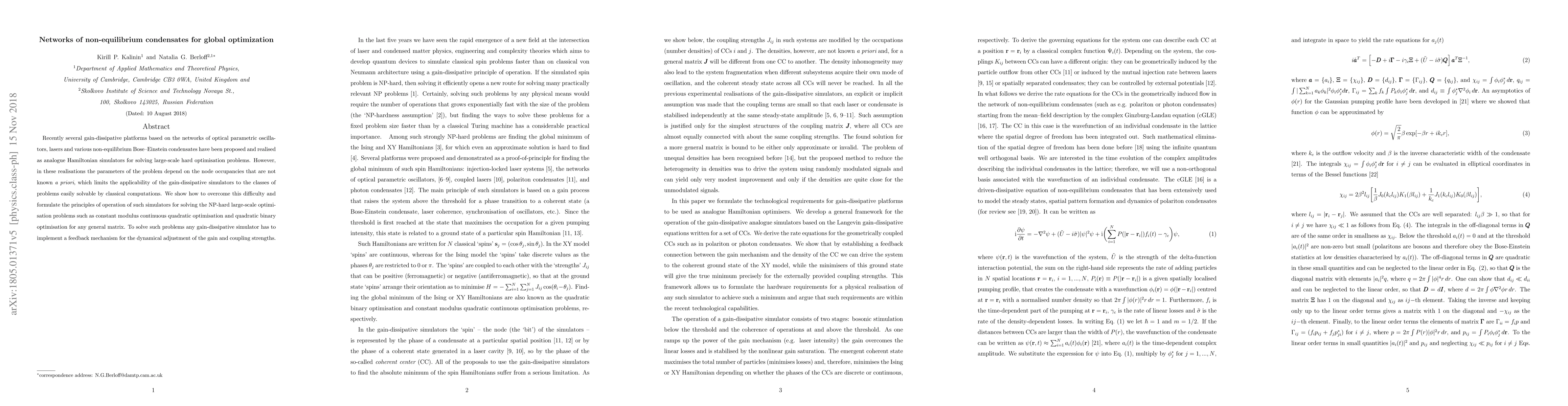Recently several gain-dissipative platforms based on the networks of optical parametric oscillators, lasers, and various non-equilibrium Bose-Einstein condensates have been proposed and realised as analogue Hamiltonian simulators for solving large-scale hard optimisation problems. However, in these realisations the parameters of the problem depend on the node occupancies that are not known a priori, which limits the applicability of the gain-dissipative simulators to the classes of problems easily solvable by classical computations. We show how to overcome this difficulty and formulate the principles of operation of such simulators for solving the NP-hard large-scale optimisation problems such as constant modulus continuous quadratic optimisation and quadratic binary optimisation for any general matrix. To solve such problems any gain-dissipative simulator has to implement a feedback mechanism for the dynamical adjustment of the gain and coupling strengths.