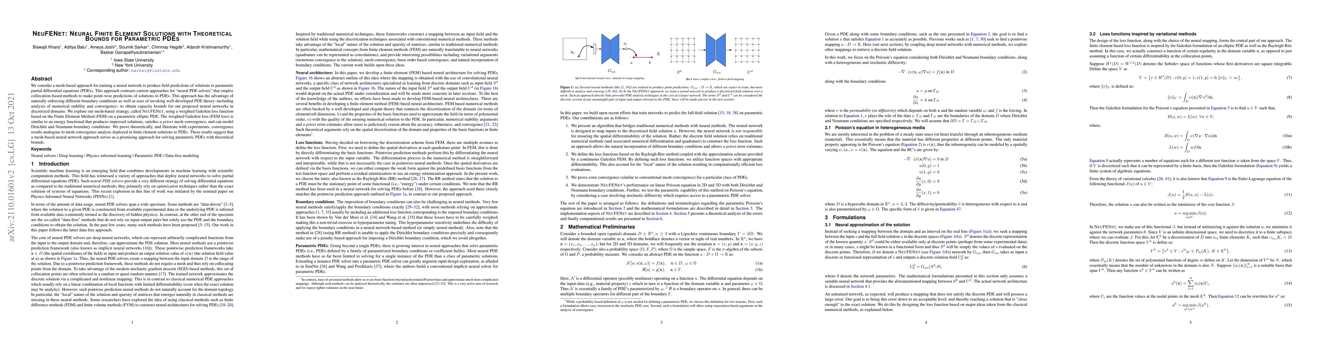 We consider a mesh-based approach for training a neural network to produce field predictions of solutions to parametric partial differential equations (PDEs). This approach contrasts current approaches for "neural PDE solvers" that employ collocation-based methods to make point-wise predictions of solutions to PDEs. This approach has the advantage of naturally enforcing different boundary conditions as well as ease of invoking well-developed PDE theory -- including analysis of numerical stability and convergence -- to obtain capacity bounds for our proposed neural networks in discretized domains. We explore our mesh-based strategy, called NeuFENet, using a weighted Galerkin loss function based on the Finite Element Method (FEM) on a parametric elliptic PDE. The weighted Galerkin loss (FEM loss) is similar to an energy functional that produces improved solutions, satisfies a priori mesh convergence, and can model Dirichlet and Neumann boundary conditions. We prove theoretically, and illustrate with experiments, convergence results analogous to mesh convergence analysis deployed in finite element solutions to PDEs. These results suggest that a mesh-based neural network approach serves as a promising approach for solving parametric PDEs with theoretical bounds.
