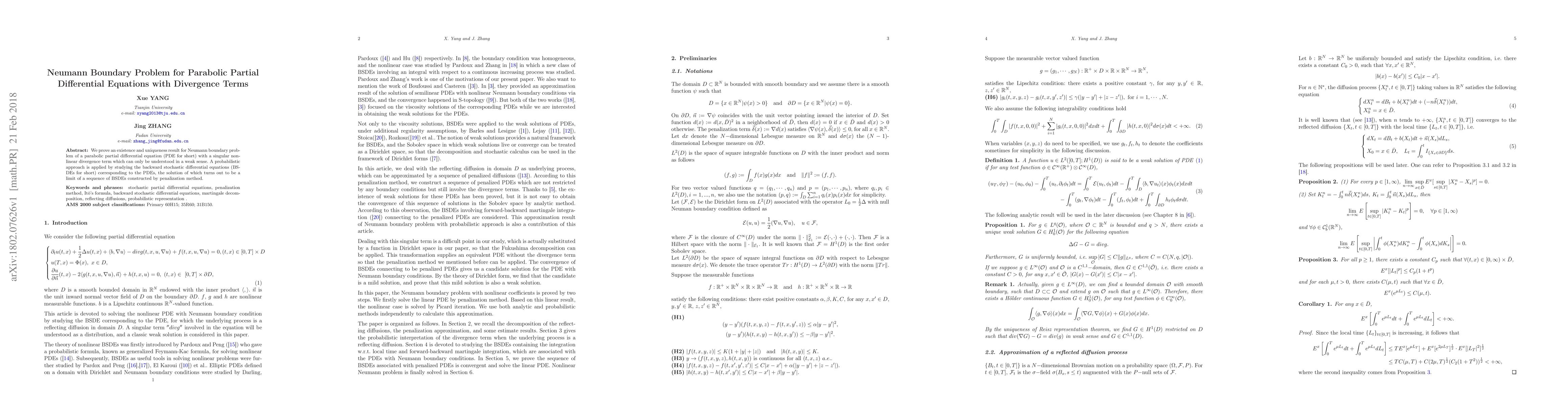 This paper proves the existence and uniqueness of solutions for a Neumann boundary problem of a parabolic PDE with a singular nonlinear divergence term, using a probabilistic approach involving backward stochastic differential equations (BSDEs) and a penalization method.