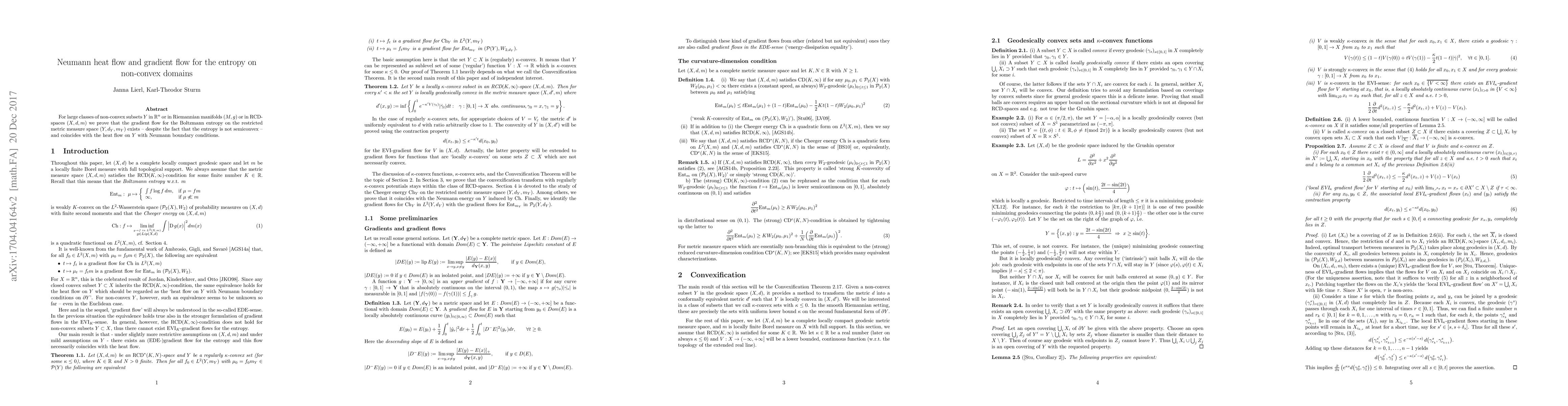 For large classes of non-convex subsets $Y$ in ${\mathbb R}^n$ or in Riemannian manifolds $(M,g)$ or in RCD-spaces $(X,d,m)$ we prove that the gradient flow for the Boltzmann entropy on the restricted metric measure space $(Y,d_Y,m_Y)$ exists - despite the fact that the entropy is not semiconvex - and coincides with the heat flow on $Y$ with Neumann boundary conditions.