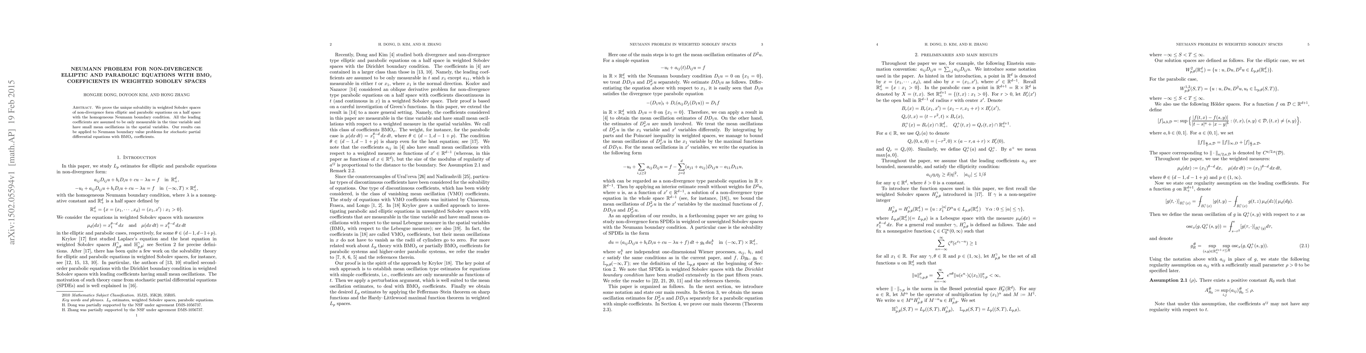 We prove the unique solvability in weighted Sobolev spaces of non-divergence form elliptic and parabolic equations on a half space with the homogeneous Neumann boundary condition. All the leading coefficients are assumed to be only measurable in the time variable and have small mean oscillations in the spatial variables. Our results can be applied to Neumann boundary value problems for {\em stochastic} partial differential equations with BMO$_x$ coefficients.