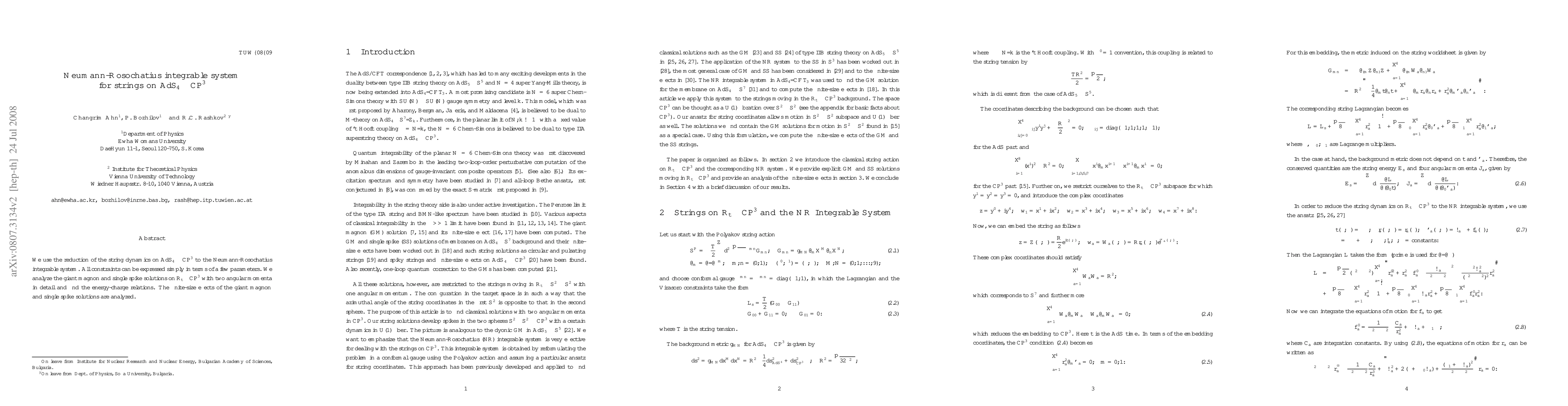 This paper explores the reduction of string dynamics on AdS_4 x CP^3 to the Neumann-Rosochatius integrable system, analyzing giant magnon and single spike solutions with two angular momenta to derive energy-charge relations and study finite-size effects.