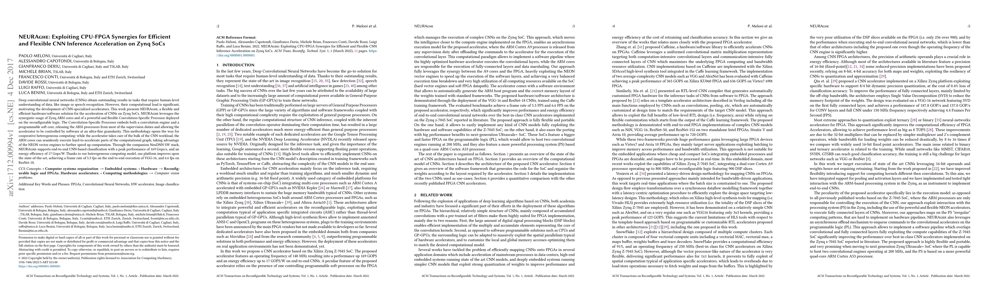 Deep convolutional neural networks (CNNs) obtain outstanding results in tasks that require human-level understanding of data, like image or speech recognition. However, their computational load is significant, motivating the development of CNN-specialized accelerators. This work presents NEURAghe, a flexible and efficient hardware/software solution for the acceleration of CNNs on Zynq SoCs. NEURAghe leverages the synergistic usage of Zynq ARM cores and of a powerful and flexible Convolution-Specific Processor deployed on the reconfigurable logic. The Convolution-Specific Processor embeds both a convolution engine and a programmable soft core, releasing the ARM processors from most of the supervision duties and allowing the accelerator to be controlled by software at an ultra-fine granularity. This methodology opens the way for cooperative heterogeneous computing: while the accelerator takes care of the bulk of the CNN workload, the ARM cores can seamlessly execute hard-to-accelerate parts of the computational graph, taking advantage of the NEON vector engines to further speed up computation. Through the companion NeuDNN SW stack, NEURAghe supports end-to-end CNN-based classification with a peak performance of 169 Gops/s, and an energy efficiency of 17 Gops/W. Thanks to our heterogeneous computing model, our platform improves upon the state-of-the-art, achieving a frame rate of 5.5 fps on the end-to-end execution of VGG-16, and 6.6 fps on ResNet-18.