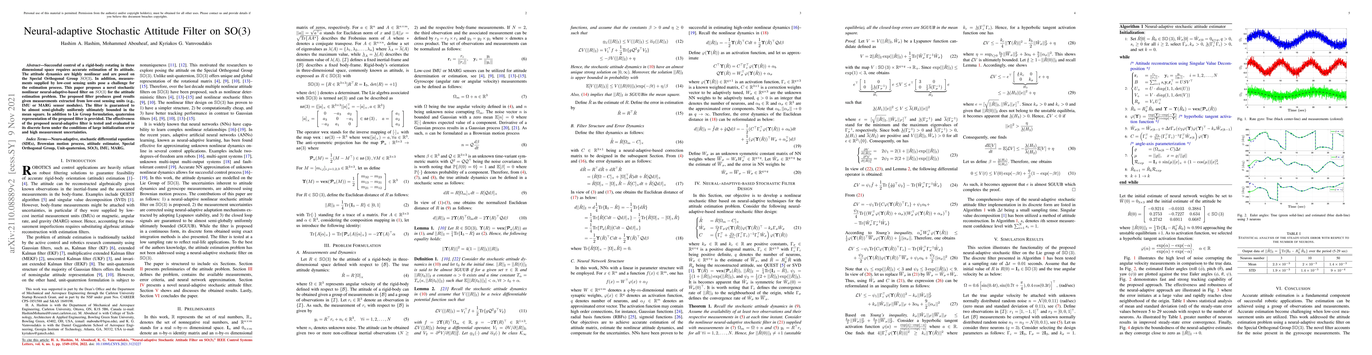 Successful control of a rigid-body rotating in three dimensional space requires accurate estimation of its attitude. The attitude dynamics are highly nonlinear and are posed on the Special Orthogonal Group $SO(3)$. In addition, measurements supplied by low-cost sensing units pose a challenge for the estimation process. This paper proposes a novel stochastic nonlinear neural-adaptive-based filter on $SO(3)$ for the attitude estimation problem. The proposed filter produces good results given measurements extracted from low-cost sensing units (e.g., IMU or MARG sensor modules). The filter is guaranteed to be almost semi-globally uniformly ultimately bounded in the mean square. In addition to Lie Group formulation, quaternion representation of the proposed filter is provided. The effectiveness of the proposed neural-adaptive filter is tested and evaluated in its discrete form under the conditions of large initialization error and high measurement uncertainties. keywords / index-terms: Neuro-adaptive, stochastic differential equations (SDEs), Brownian motion process, attitude estimator, Special Orthogonal Group, Unit-quaternion, SO(3), IMU, MARG.