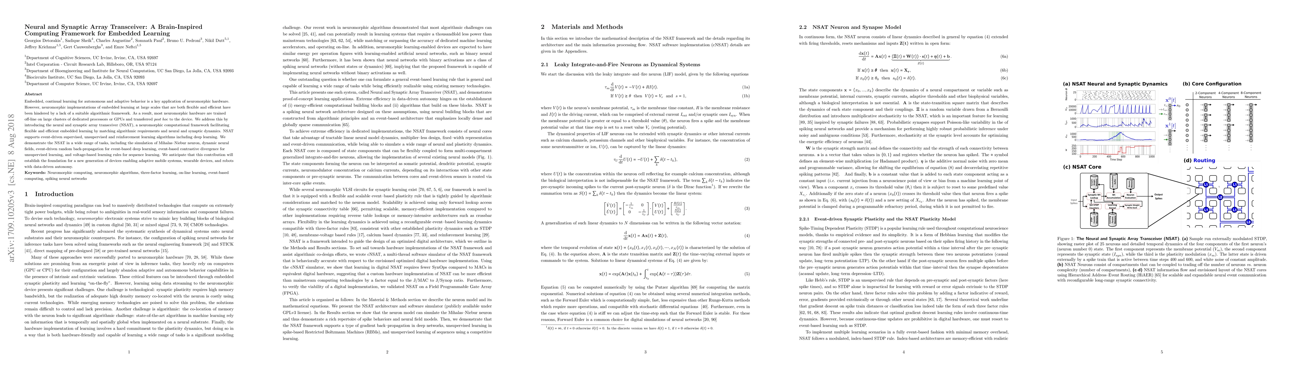 Embedded, continual learning for autonomous and adaptive behavior is a key application of neuromorphic hardware. However, neuromorphic implementations of embedded learning at large scales that are both flexible and efficient have been hindered by a lack of a suitable algorithmic framework. As a result, the most neuromorphic hardware is trained off-line on large clusters of dedicated processors or GPUs and transferred post hoc to the device. We address this by introducing the neural and synaptic array transceiver (NSAT), a neuromorphic computational framework facilitating flexible and efficient embedded learning by matching algorithmic requirements and neural and synaptic dynamics. NSAT supports event-driven supervised, unsupervised and reinforcement learning algorithms including deep learning. We demonstrate the NSAT in a wide range of tasks, including the simulation of Mihalas-Niebur neuron, dynamic neural fields, event-driven random back-propagation for event-based deep learning, event-based contrastive divergence for unsupervised learning, and voltage-based learning rules for sequence learning. We anticipate that this contribution will establish the foundation for a new generation of devices enabling adaptive mobile systems, wearable devices, and robots with data-driven autonomy.