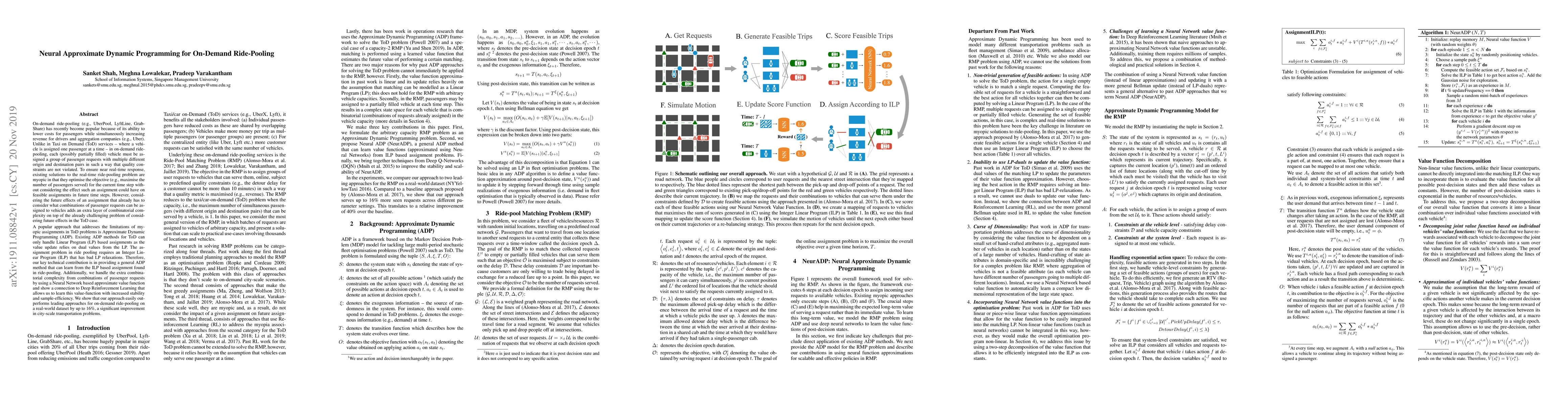 This paper proposes a Neural Approximate Dynamic Programming method for on-demand ride-pooling, addressing the combinatorial complexity of assigning multiple passengers to vehicles. It outperforms existing methods by up to 16% in real-world scenarios, leveraging a neural network-based value function for improved stability and sample-efficiency.