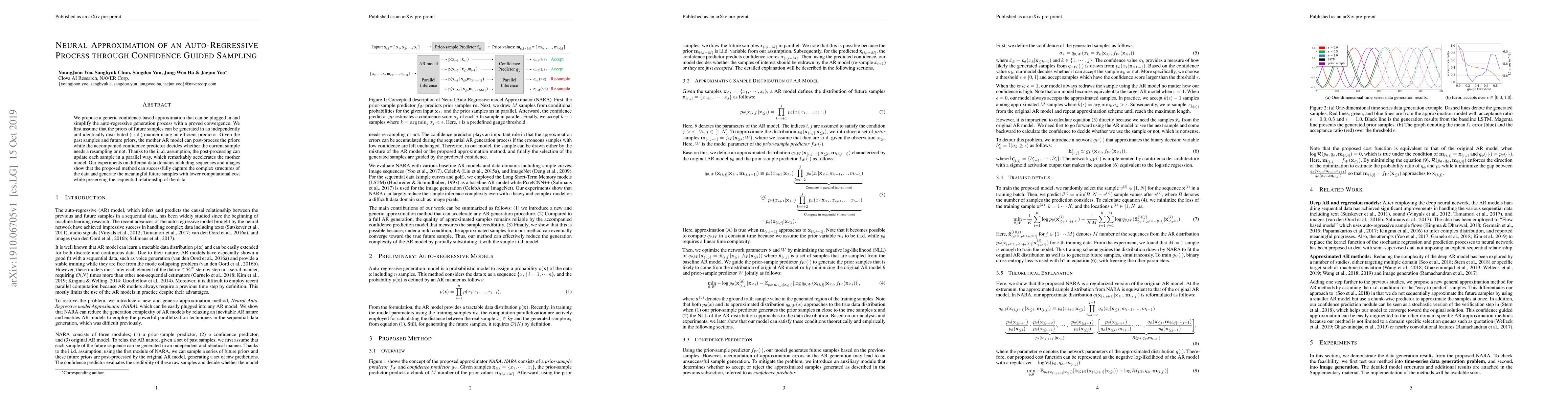 We propose a generic confidence-based approximation that can be plugged in and simplify the auto-regressive generation process with a proved convergence. We first assume that the priors of future samples can be generated in an independently and identically distributed (i.i.d.) manner using an efficient predictor. Given the past samples and future priors, the mother AR model can post-process the priors while the accompanied confidence predictor decides whether the current sample needs a resampling or not. Thanks to the i.i.d. assumption, the post-processing can update each sample in a parallel way, which remarkably accelerates the mother model. Our experiments on different data domains including sequences and images show that the proposed method can successfully capture the complex structures of the data and generate the meaningful future samples with lower computational cost while preserving the sequential relationship of the data.