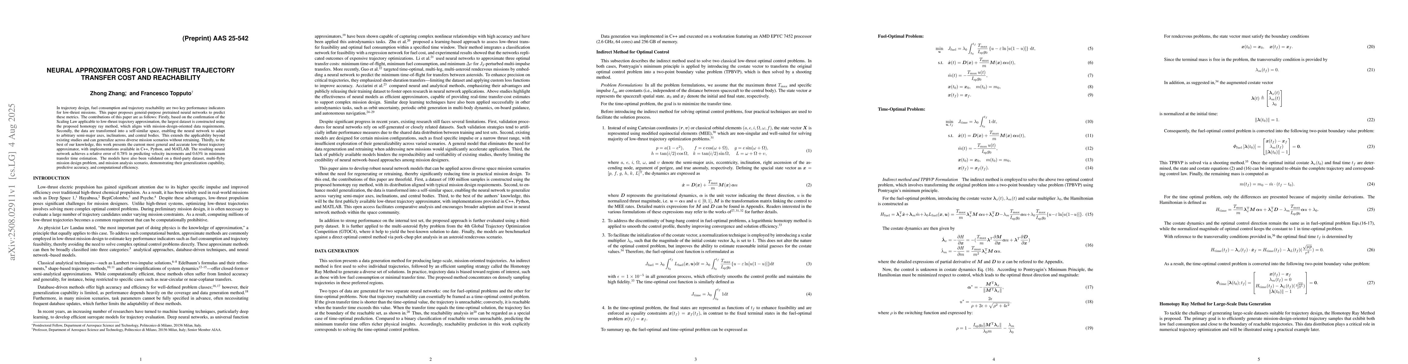 The paper introduces a novel neural network architecture that leverages inherent symmetries in low-thrust trajectory optimization problems to reduce dimensionality, combined with a mission-design-oriented data generation method.