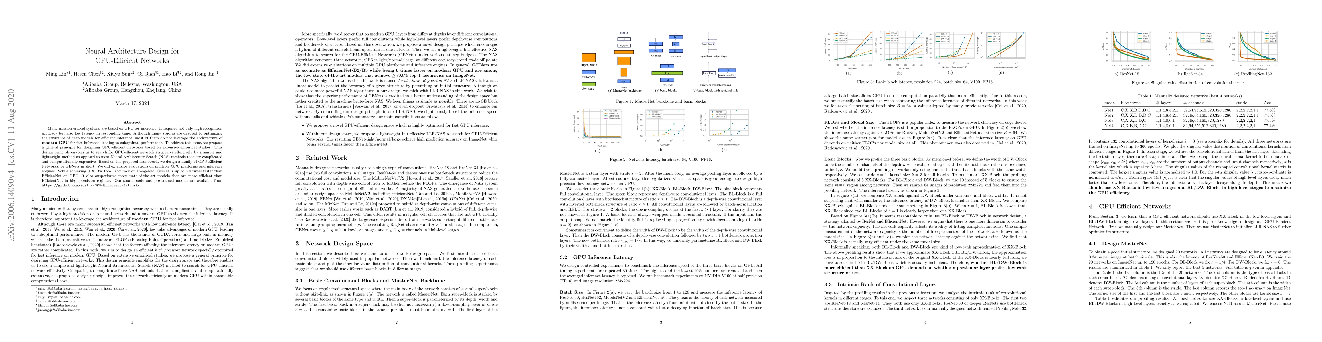 This paper proposes a design principle for creating GPU-efficient neural networks that leverage modern GPU architecture, resulting in a family of networks called GENets. These networks achieve high accuracy while significantly reducing latency compared to other models, outperforming EfficientNet by up to 6.4 times on GPU.