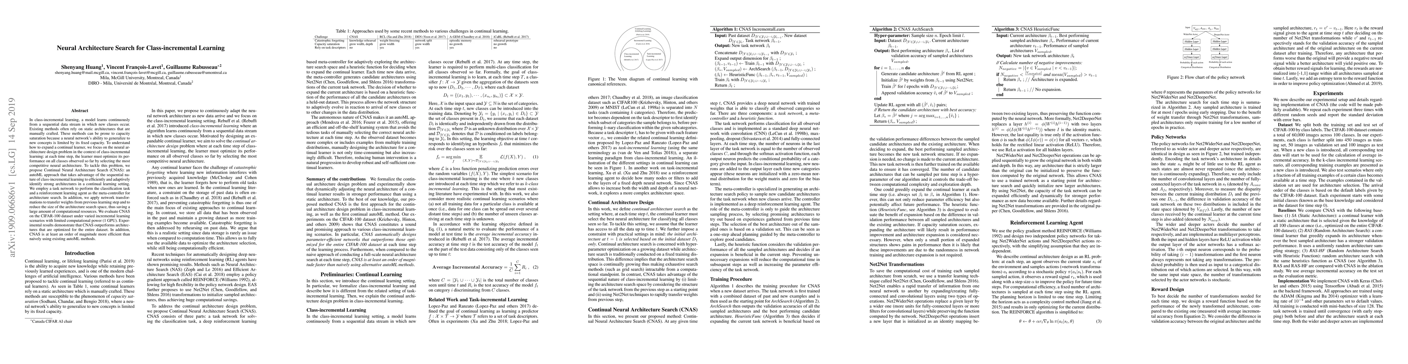 This paper proposes Continual Neural Architecture Search (CNAS), an autoML approach for class-incremental learning that adaptively identifies optimal neural architectures sequentially. CNAS employs a reinforcement learning agent for meta-control and network transformations to enhance efficiency, outperforming static architectures and being significantly more computationally efficient.