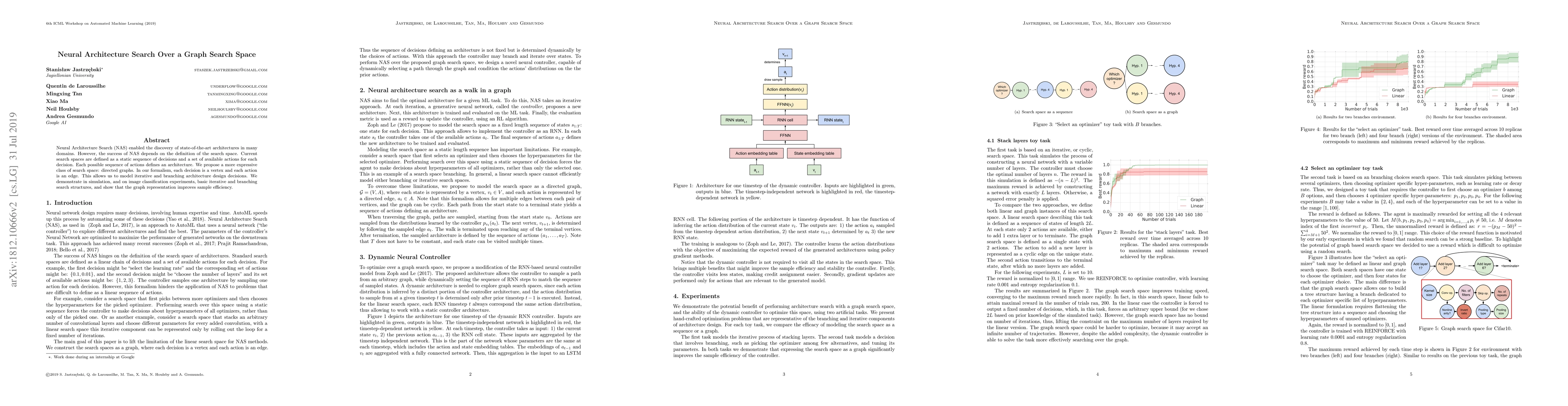 This paper proposes a novel neural architecture search (NAS) method using directed graphs to define a more expressive search space, allowing for iterative and branching design decisions. The graph representation enhances sample efficiency, as demonstrated through simulations and image classification experiments.
