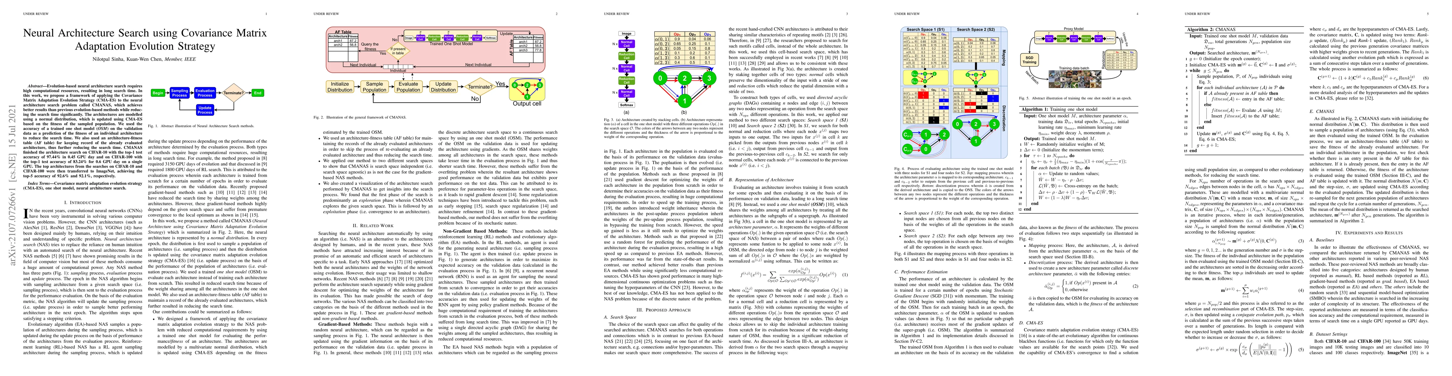 This paper proposes CMANAS, a neural architecture search framework using Covariance Matrix Adaptation Evolution Strategy (CMA-ES) to efficiently find optimal neural architectures. It significantly reduces search time while achieving better results compared to previous evolution-based methods, demonstrated by top-1 accuracies of 97.44% on CIFAR-10 and 83.24% on CIFAR-100 within 0.45 and 0.6 GPU days respectively.