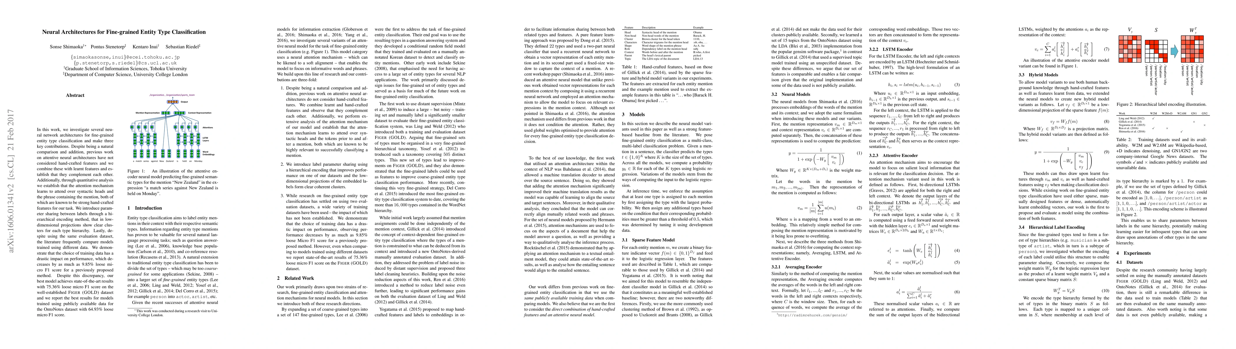Researchers developed new neural architectures for fine-grained entity type classification, achieving state-of-the-art results with 75.36% accuracy on the FIGER dataset. They found that combining learned and hand-crafted features and using attention mechanisms can significantly improve performance.