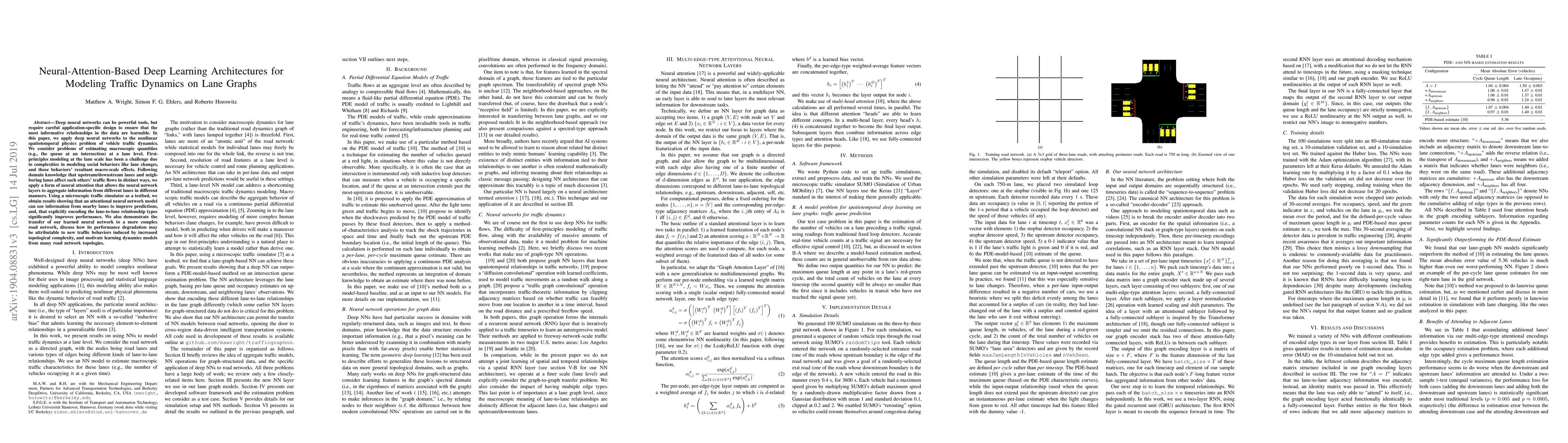 This paper proposes a neural attention-based deep learning architecture to model traffic dynamics on lane graphs, achieving improved predictions by considering relationships between nearby lanes. It demonstrates the transfer of learned models to complex road networks and highlights the potential for developing dynamic traffic models from various topologies.