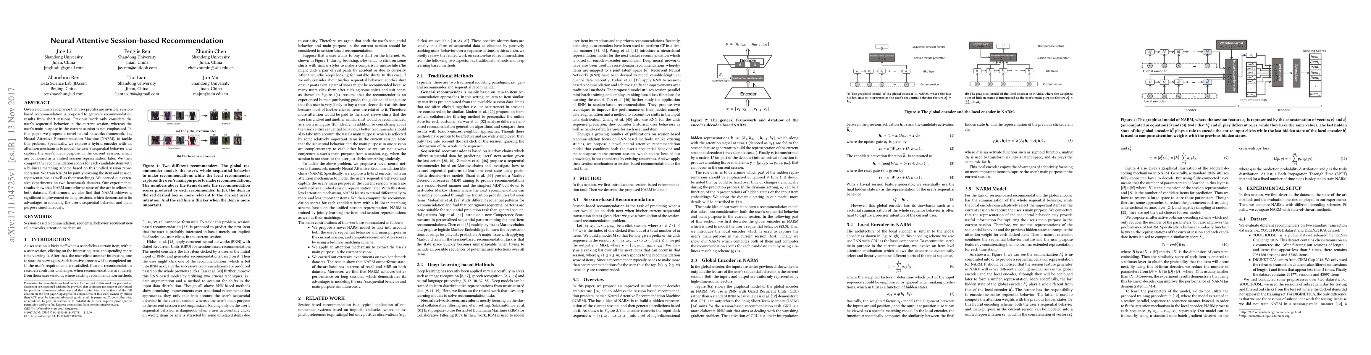 This paper proposes the Neural Attentive Recommendation Machine (NARM) to enhance session-based recommendation systems by incorporating an attention mechanism to model users' sequential behavior and main purpose in a session, achieving superior performance over state-of-the-art baselines in experiments on benchmark datasets.