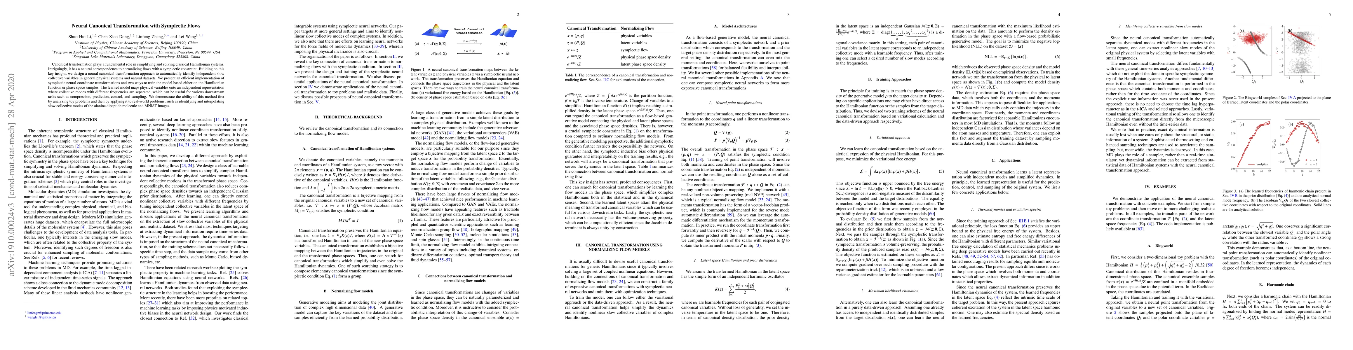 Researchers developed a neural model that uses symplectic flows to transform physical variables into a latent representation, preserving the Hamiltonian evolution and capturing nonlinear collective modes. This approach was applied to toy problems and real-world datasets such as MNIST.
