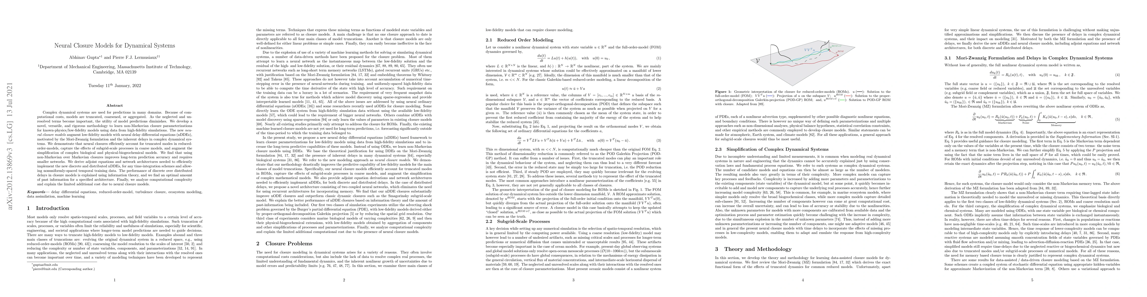 Complex dynamical systems are used for predictions in many domains. Because of computational costs, models are truncated, coarsened, or aggregated. As the neglected and unresolved terms become important, the utility of model predictions diminishes. We develop a novel, versatile, and rigorous methodology to learn non-Markovian closure parameterizations for known-physics/low-fidelity models using data from high-fidelity simulations. The new "neural closure models" augment low-fidelity models with neural delay differential equations (nDDEs), motivated by the Mori-Zwanzig formulation and the inherent delays in complex dynamical systems. We demonstrate that neural closures efficiently account for truncated modes in reduced-order-models, capture the effects of subgrid-scale processes in coarse models, and augment the simplification of complex biological and physical-biogeochemical models. We find that using non-Markovian over Markovian closures improves long-term prediction accuracy and requires smaller networks. We derive adjoint equations and network architectures needed to efficiently implement the new discrete and distributed nDDEs, for any time-integration schemes and allowing nonuniformly-spaced temporal training data. The performance of discrete over distributed delays in closure models is explained using information theory, and we find an optimal amount of past information for a specified architecture. Finally, we analyze computational complexity and explain the limited additional cost due to neural closure models.