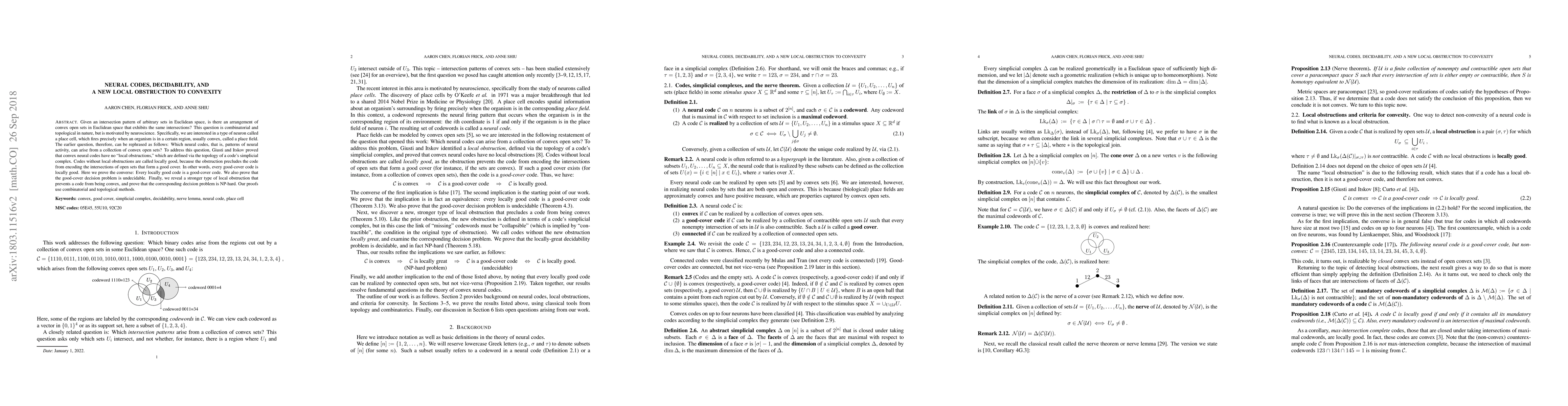 Given an intersection pattern of arbitrary sets in Euclidean space, is there an arrangement of convex open sets in Euclidean space that exhibits the same intersections? This question is combinatorial and topological in nature, but is motivated by neuroscience. Specifically, we are interested in a type of neuron called a place cell, which fires precisely when an organism is in a certain region, usually convex, called a place field. The earlier question, therefore, can be rephrased as follows: Which neural codes, that is, patterns of neural activity, can arise from a collection of convex open sets? To address this question, Giusti and Itskov proved that convex neural codes have no "local obstructions," which are defined via the topology of a code's simplicial complex. Codes without local obstructions are called locally good, because the obstruction precludes the code from encoding the intersections of open sets that form a good cover. In other words, every good-cover code is locally good. Here we prove the converse: Every locally good code is a good-cover code. We also prove that the good-cover decision problem is undecidable. Finally, we reveal a stronger type of local obstruction that prevents a code from being convex, and prove that the corresponding decision problem is NP-hard. Our proofs use combinatorial and topological methods.