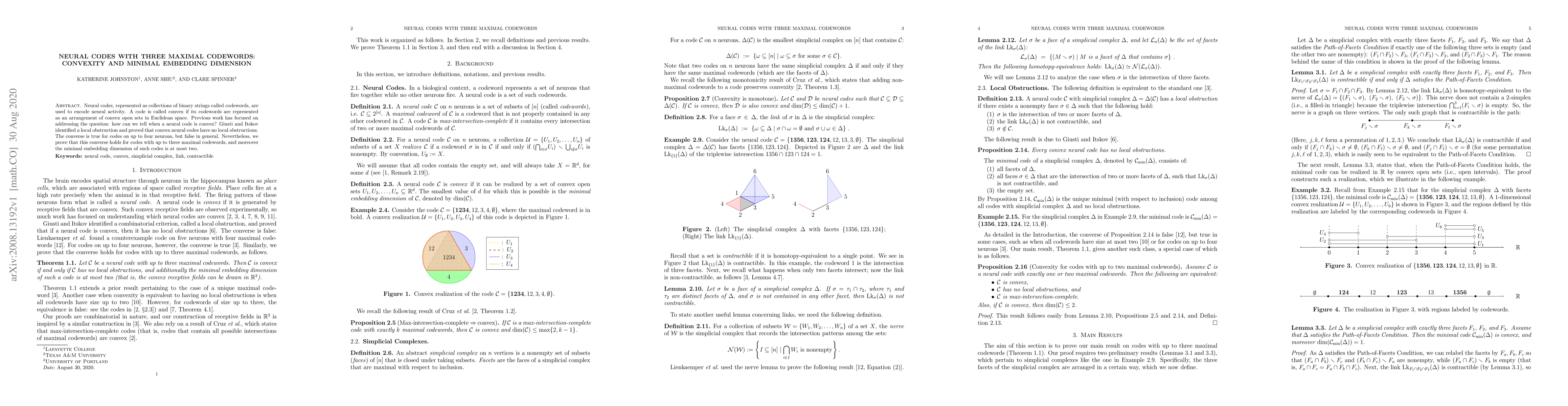 This paper investigates neural codes with up to three maximal codewords, proving that such codes are convex and that their minimal embedding dimension is at most two. It extends previous findings that the converse holds for codes with up to four neurons to codes with up to three maximal codewords.