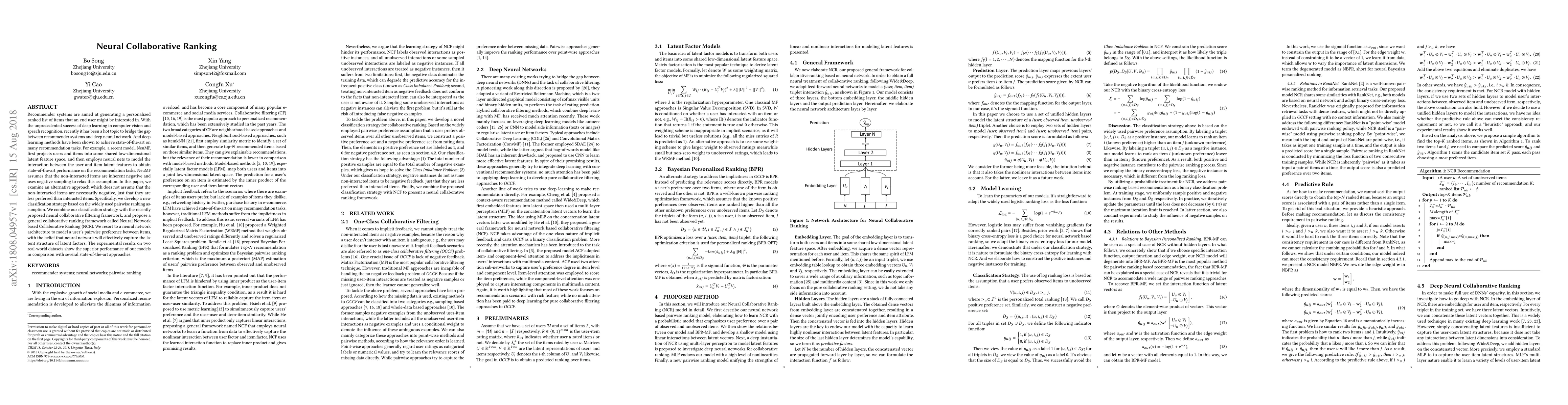 This paper introduces Neural Network based Collaborative Ranking (NCR), a novel framework combining a classification strategy based on pairwise ranking with neural collaborative filtering to model user-item interactions. Experimental results demonstrate NCR's superior performance over state-of-the-art methods on real-world datasets.