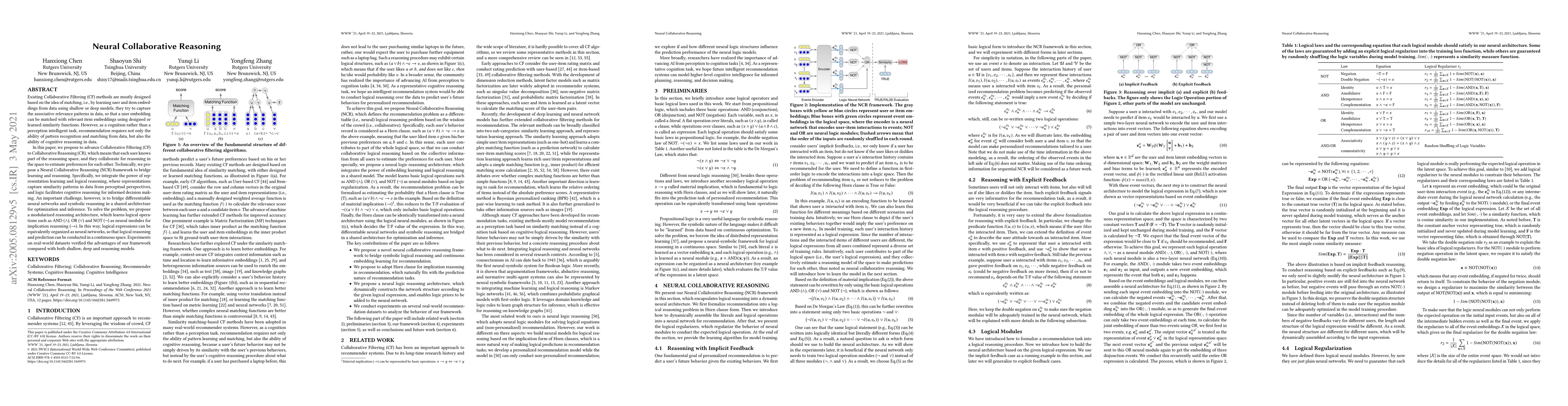 The paper proposes a Neural Collaborative Reasoning (NCR) framework to enhance Collaborative Filtering by incorporating cognitive reasoning into recommendation systems. It integrates neural networks for representation learning and symbolic reasoning to facilitate informed decision making, addressing the challenge of combining differentiable neural networks with logical reasoning.