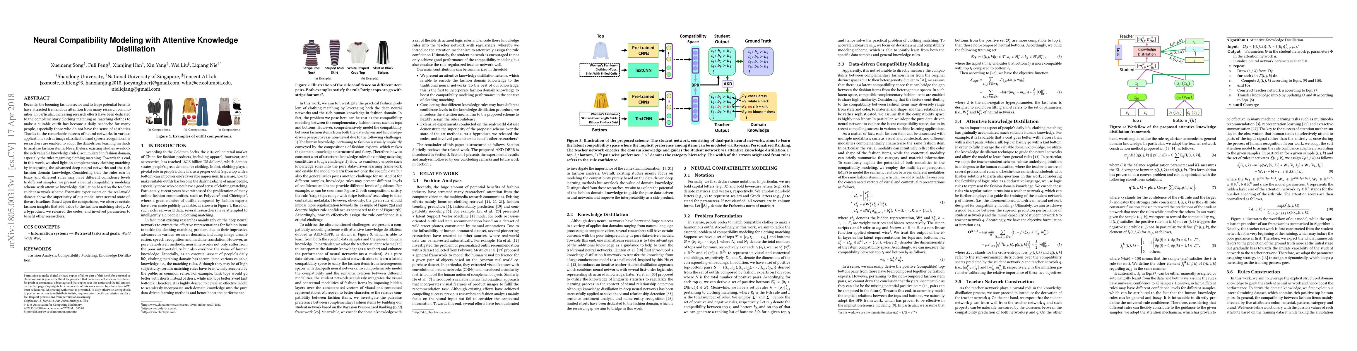 Recently, the booming fashion sector and its huge potential benefits have attracted tremendous attention from many research communities. In particular, increasing research efforts have been dedicated to the complementary clothing matching as matching clothes to make a suitable outfit has become a daily headache for many people, especially those who do not have the sense of aesthetics. Thanks to the remarkable success of neural networks in various applications such as image classification and speech recognition, the researchers are enabled to adopt the data-driven learning methods to analyze fashion items. Nevertheless, existing studies overlook the rich valuable knowledge (rules) accumulated in fashion domain, especially the rules regarding clothing matching. Towards this end, in this work, we shed light on complementary clothing matching by integrating the advanced deep neural networks and the rich fashion domain knowledge. Considering that the rules can be fuzzy and different rules may have different confidence levels to different samples, we present a neural compatibility modeling scheme with attentive knowledge distillation based on the teacher-student network scheme. Extensive experiments on the real-world dataset show the superiority of our model over several state-of-the-art baselines. Based upon the comparisons, we observe certain fashion insights that add value to the fashion matching study. As a byproduct, we released the codes, and involved parameters to benefit other researchers.