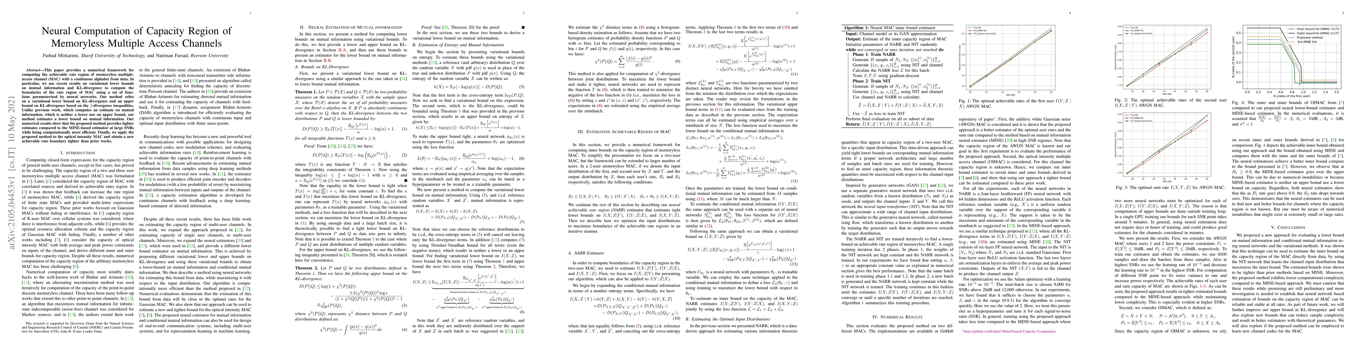Researchers developed a new method to estimate the rate region of memoryless multiple access channels using neural networks, providing tighter estimates than existing methods at high signal-to-noise ratios.