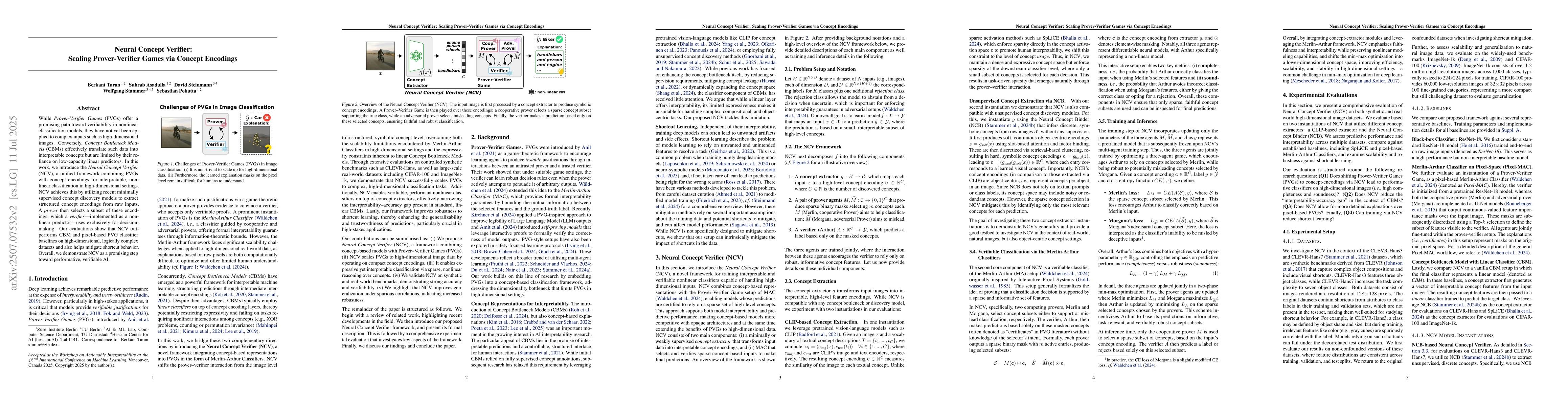 While Prover-Verifier Games (PVGs) offer a promising path toward verifiability in nonlinear classification models, they have not yet been applied to complex inputs such as high-dimensional images. Conversely, Concept Bottleneck Models (CBMs) effectively translate such data into interpretable concepts but are limited by their reliance on low-capacity linear predictors. In this work, we introduce the Neural Concept Verifier (NCV), a unified framework combining PVGs with concept encodings for interpretable, nonlinear classification in high-dimensional settings. NCV achieves this by utilizing recent minimally supervised concept discovery models to extract structured concept encodings from raw inputs. A prover then selects a subset of these encodings, which a verifier -- implemented as a nonlinear predictor -- uses exclusively for decision-making. Our evaluations show that NCV outperforms CBM and pixel-based PVG classifier baselines on high-dimensional, logically complex datasets and also helps mitigate shortcut behavior. Overall, we demonstrate NCV as a promising step toward performative, verifiable AI.