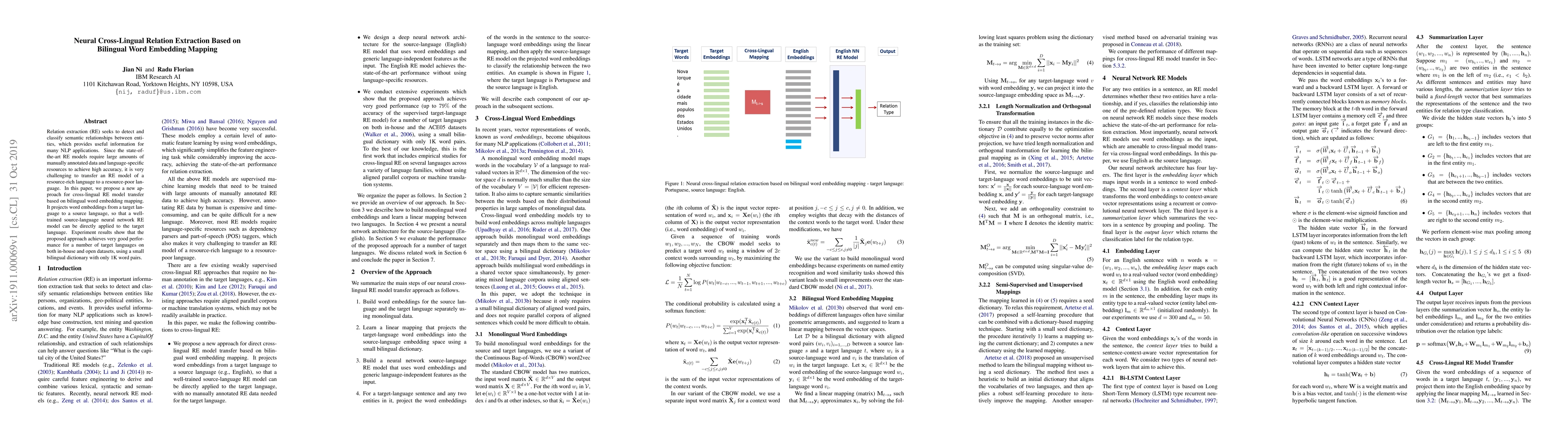 This paper proposes a method for cross-lingual relation extraction using bilingual word embedding mapping to transfer a neural network model from a resource-rich to a resource-poor language. Experimental results demonstrate effective performance using a minimal bilingual dictionary.