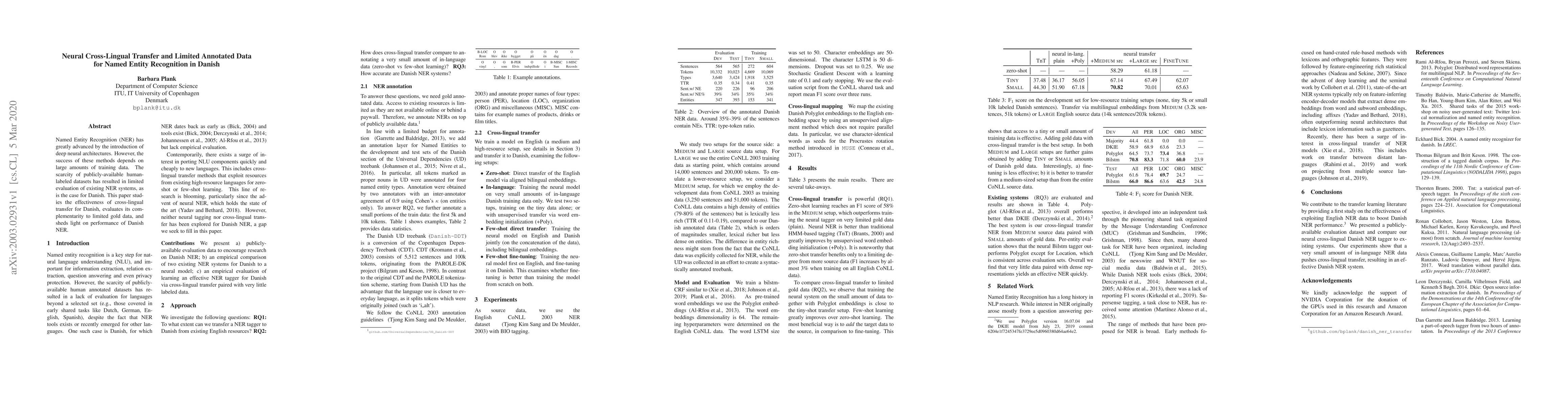 This paper investigates the use of neural cross-lingual transfer to enhance Named Entity Recognition (NER) in Danish, despite the scarcity of large annotated datasets, and evaluates its effectiveness with limited available gold data.