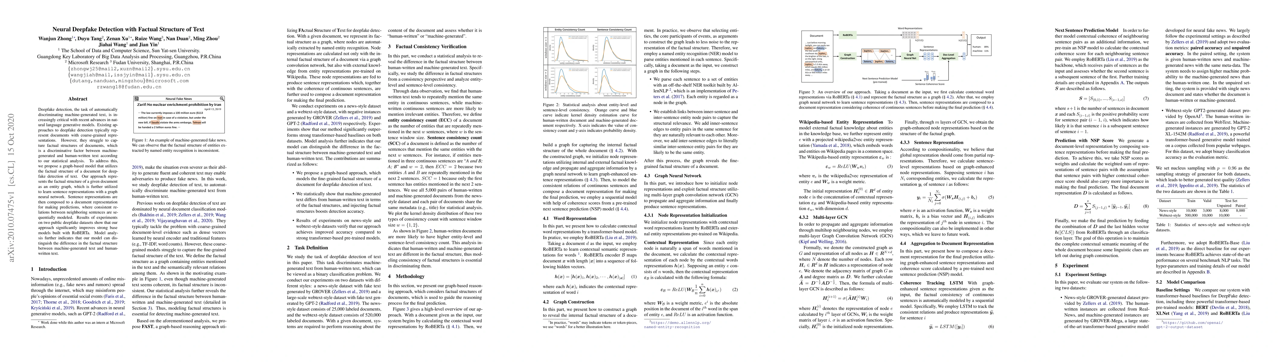 Researchers proposed a graph-based model to detect deepfakes in text using factual structure analysis, achieving significant improvements over existing base models. The approach distinguishes between machine-generated and human-written text based on consistent relations between sentences.