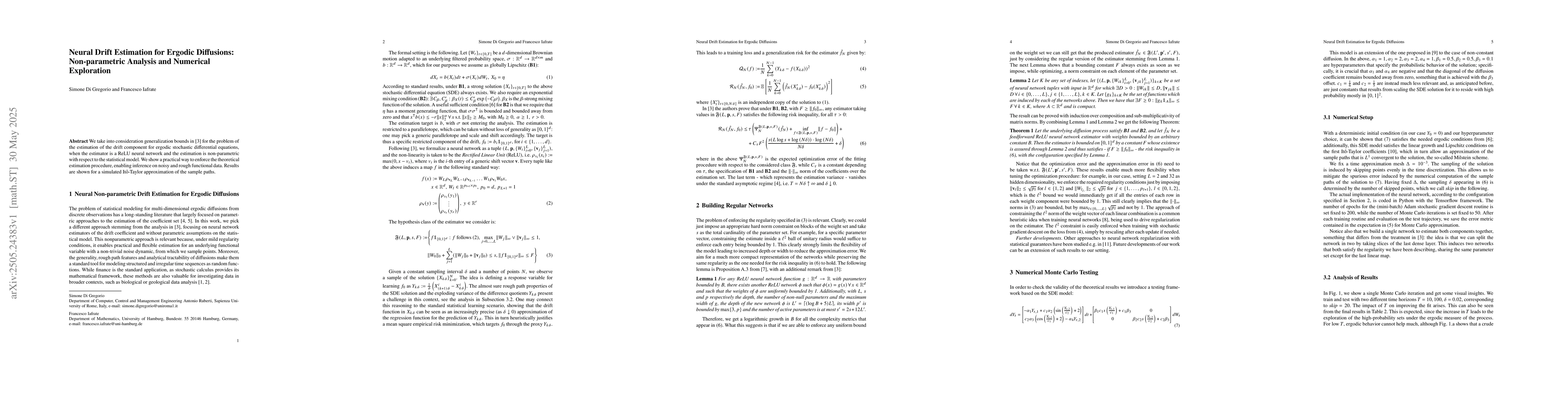 Researchers developed a method to estimate the drift component of ergodic stochastic differential equations using non-parametric analysis with ReLU neural networks, enabling inference on noisy data.