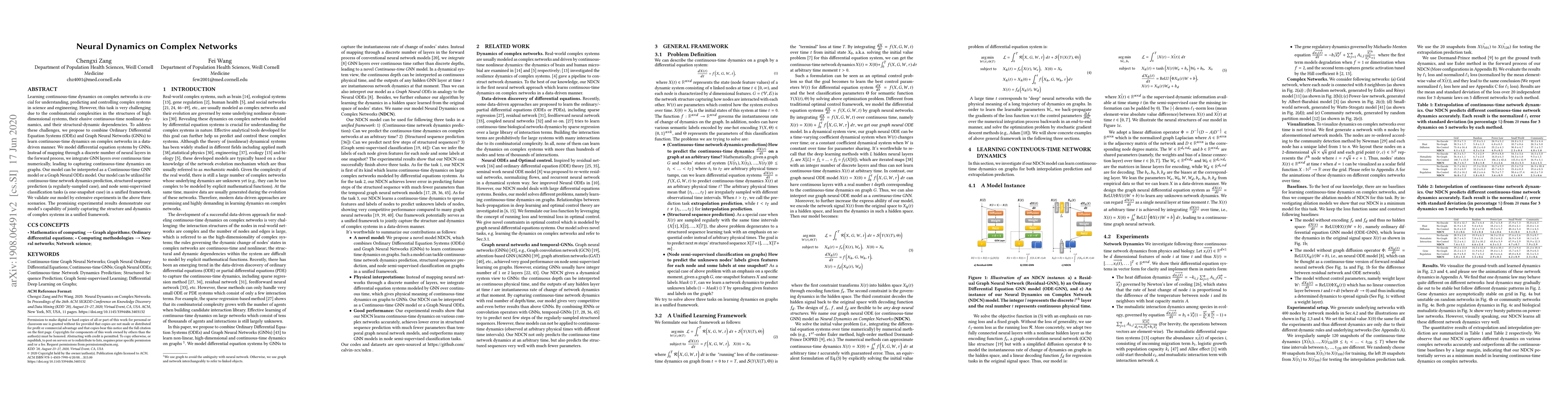 This paper proposes a novel method combining Ordinary Differential Equation Systems (ODEs) and Graph Neural Networks (GNNs) to learn continuous-time dynamics on complex networks. The model integrates GNN layers over continuous time numerically, enabling predictions for network dynamics, structured sequence prediction, and node classification in a unified framework.